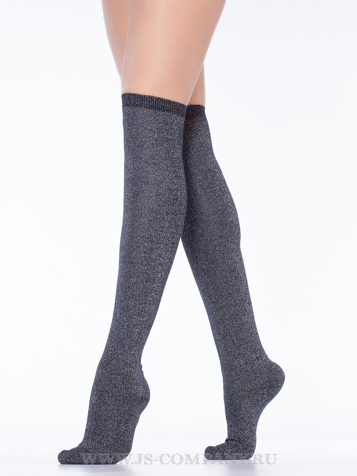 Хлопковые женские ботфорты с комфортной резинкой "в рубчик". По всей длине модели размещен блестящий люрекс.