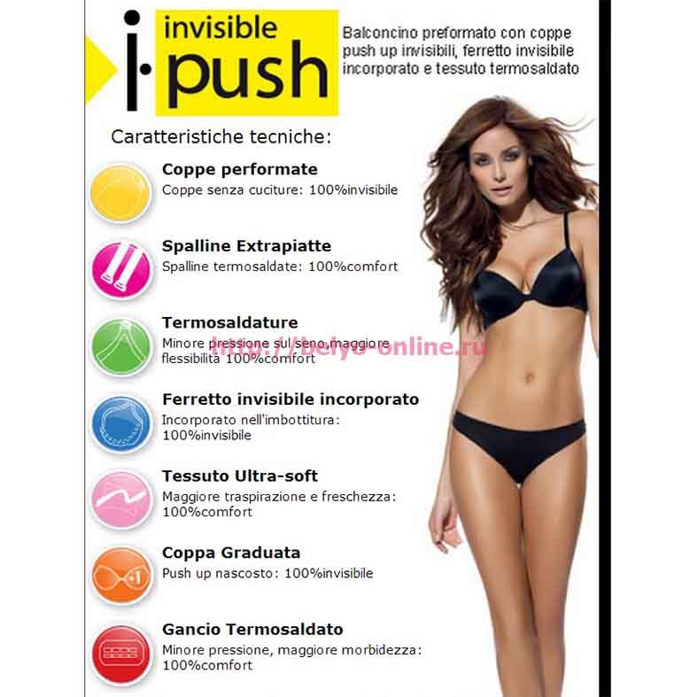 Бесшовный бюстгальтер с формованными чашечками из шелковистой воздухопропускающей дышащей микрофибры с эффектом пуш ап, позволяющим визуально увеличить грудь на один размер, и специальной лазерной термообработкой края, делающей его практически незаметным под одеждой, отстегивающимися регулируемыми бретелями и гладкой спинкой.