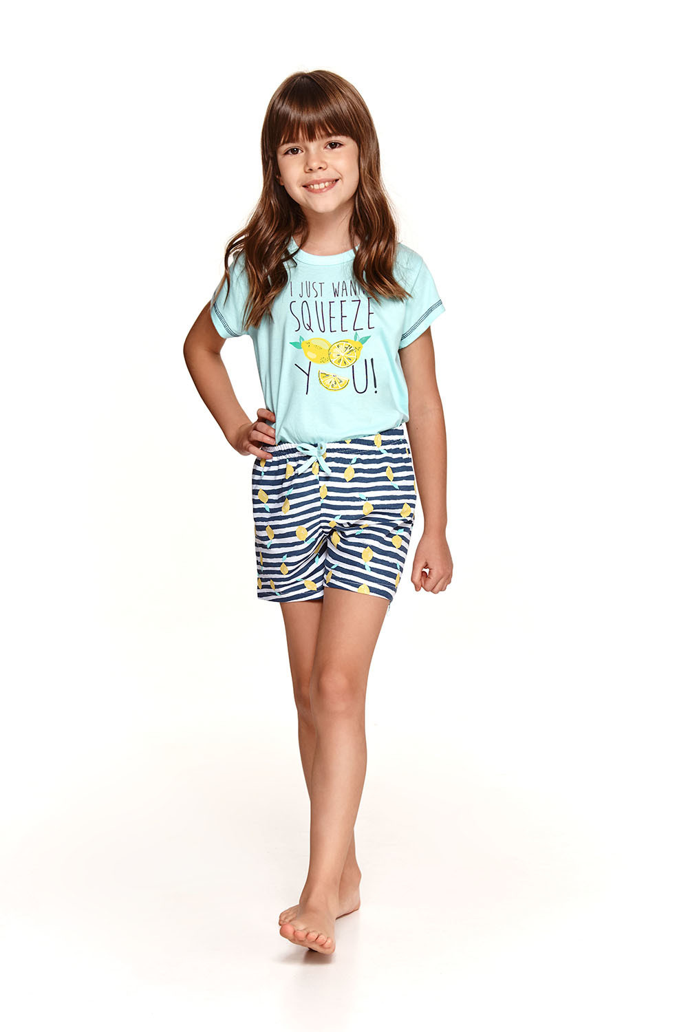 Хлопковая пижама для девочек Hania состоит из футболки и шортиков. Футболка свободного кроя и с короткими рукавами. Шорты на мягкой широкой резинке. Пижама декорирована забавным принтом. Комплект идеально подходит для сна и в качестве домашнего костюма.