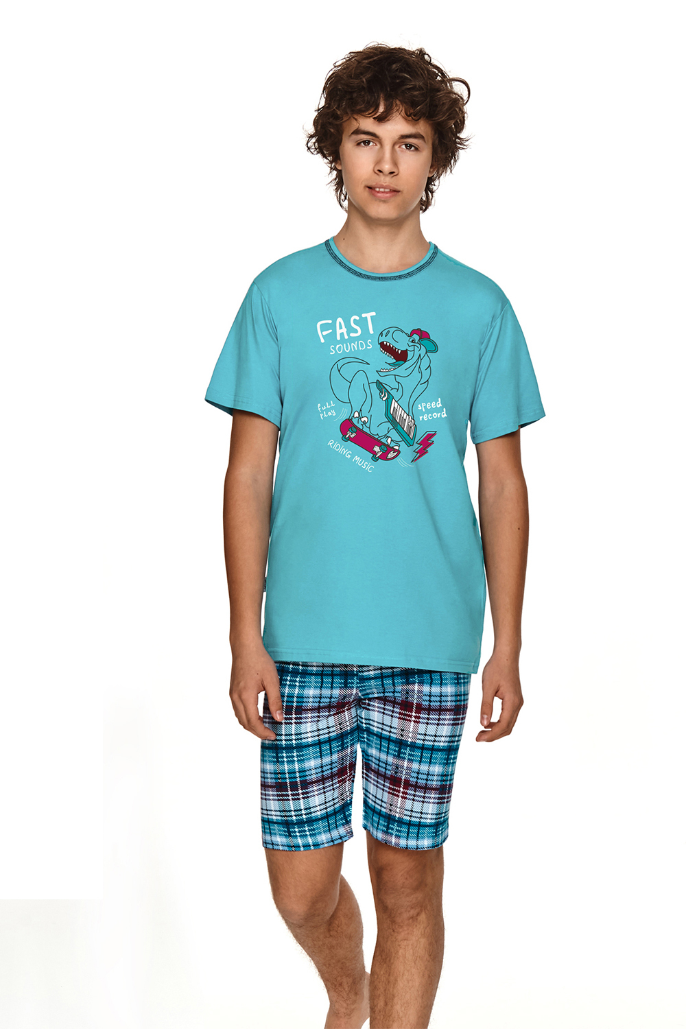 Яркая пижама для мальчиков Ivan состоит из футболки с принтом и клетчатых шорт. Футболка свободного кроя, с круглым вырезом горловины. Шорты на мягкой широкой резинке. Пижама идеально подходит для сна и в качестве домашнего костюма.