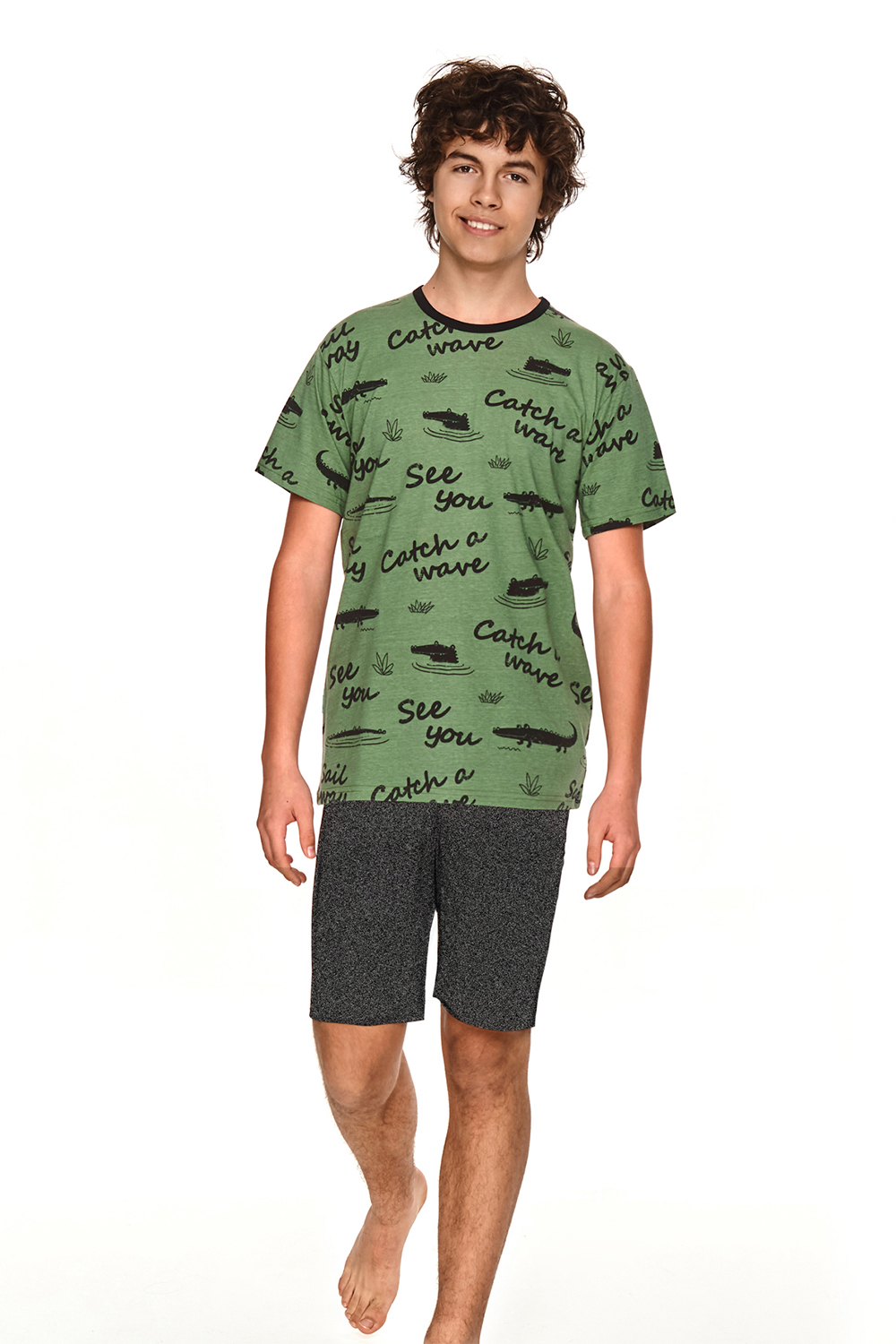 Хлопковая пижама для мальчиков Luka состоит из футболки с принтом и однотонных шорт. Футболка свободного кроя, с круглым вырезом горловины. Шорты на мягкой широкой резинке, с карманами. Пижама идеально подходит для сна и в качестве домашнего костюма.