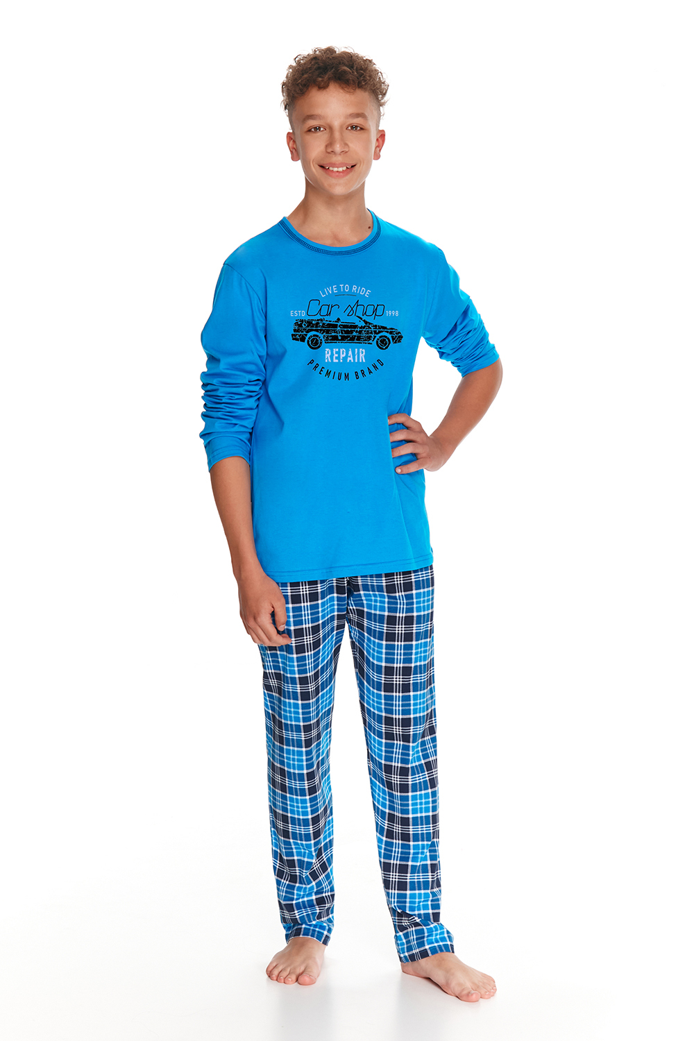 Хлопковая пижама для мальчиков Mario. Пижама выполнена из качественного и мягкого хлопка, декорирована принтом. Лонгслив с длинными рукавами и круглым вырезом горла. Брюки в клеточку, с мягкой резинкой в поясе.
