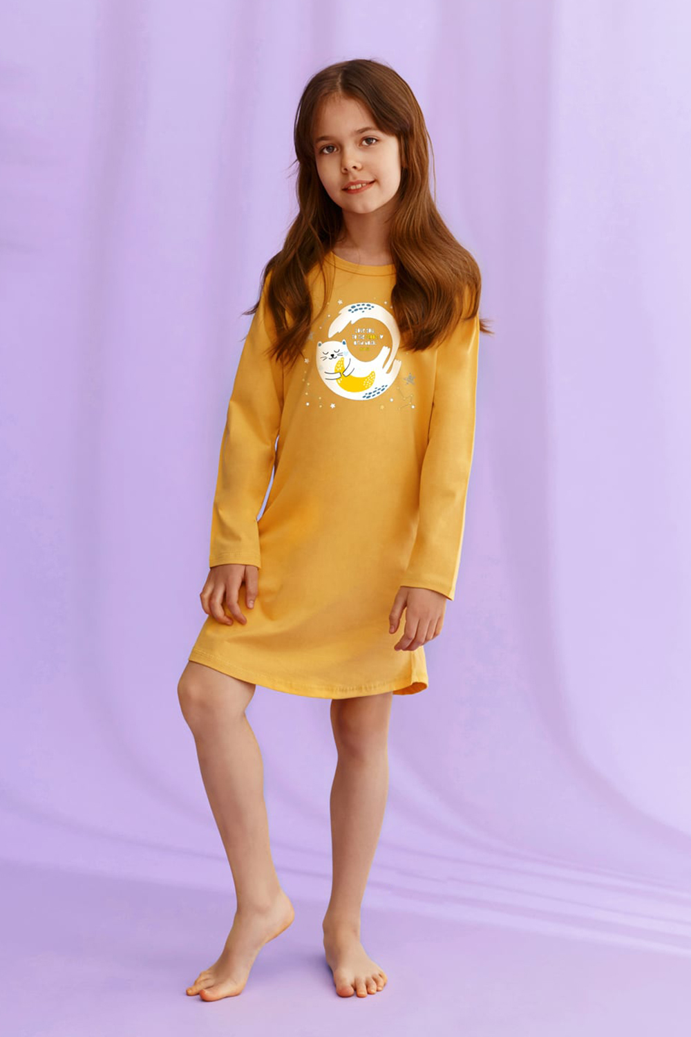 Сорочка для девочек Sarah выполнена из хлопкового полотна высшего качества. Изделие свободного кроя с длинными рукавами, круглым вырезом горловины, украшена милым принтом. Сорочка идеально подходит для сна и в качестве домашнего платья.