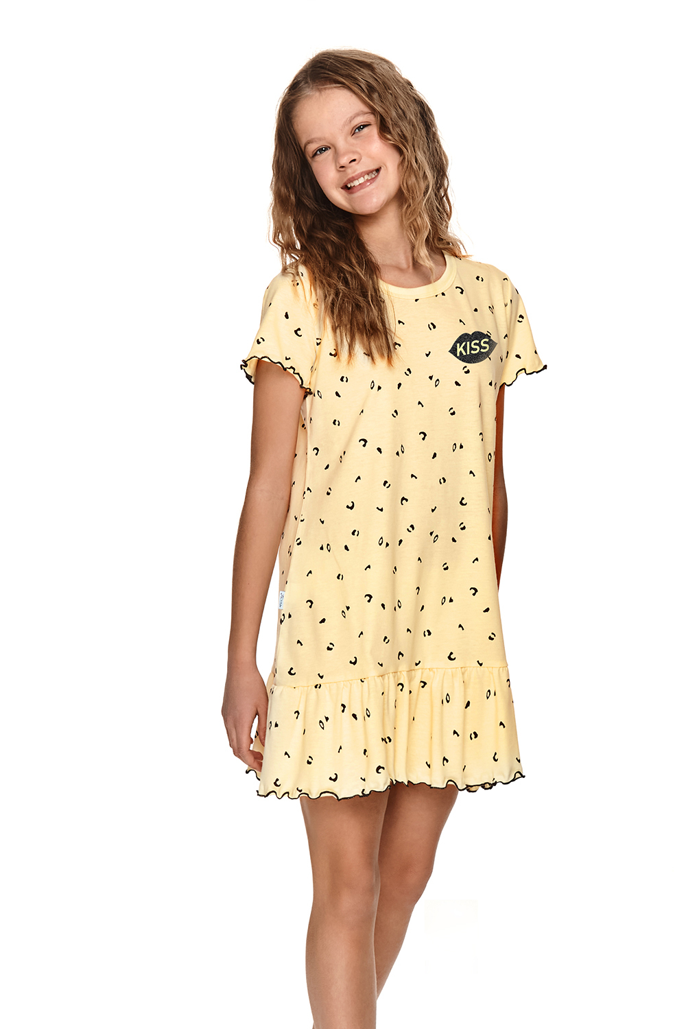 Комфортная сорочка для девочек Natasza. Сорочка выполнена из хлопкового полотна с анималистичным принтом. Изделие свободного кроя с короткими рукавами, круглым вырезом горловины. Сорочка идеально подходит для сна и в качестве домашнего платья.