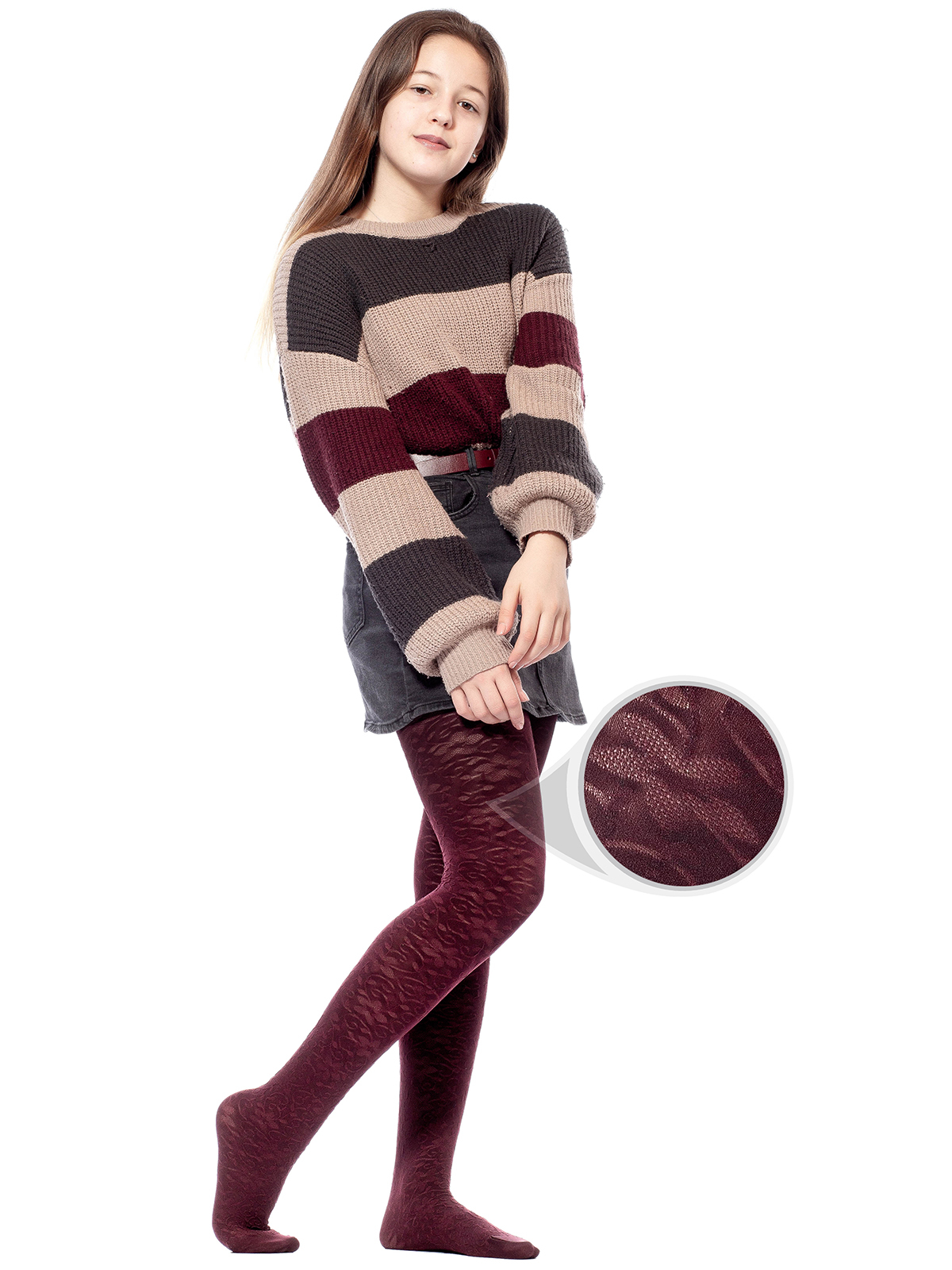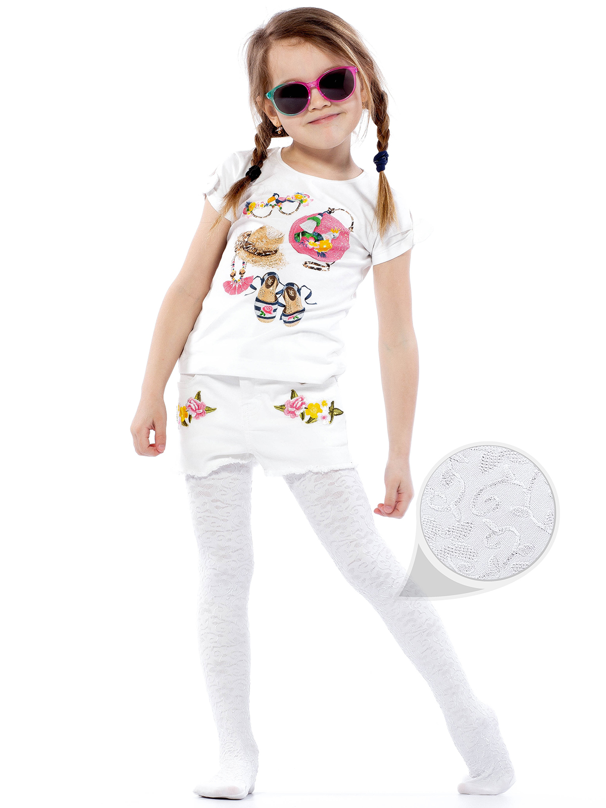 Непрозрачные детские и подростковые колготки для девочек из микрофибры с эластаном трехмерной эластичности 3D плотностью 80 ден. Рельефный цветочный узор по ножке. Широкий комфортный пояс, усиленные мыски и плоские швы.