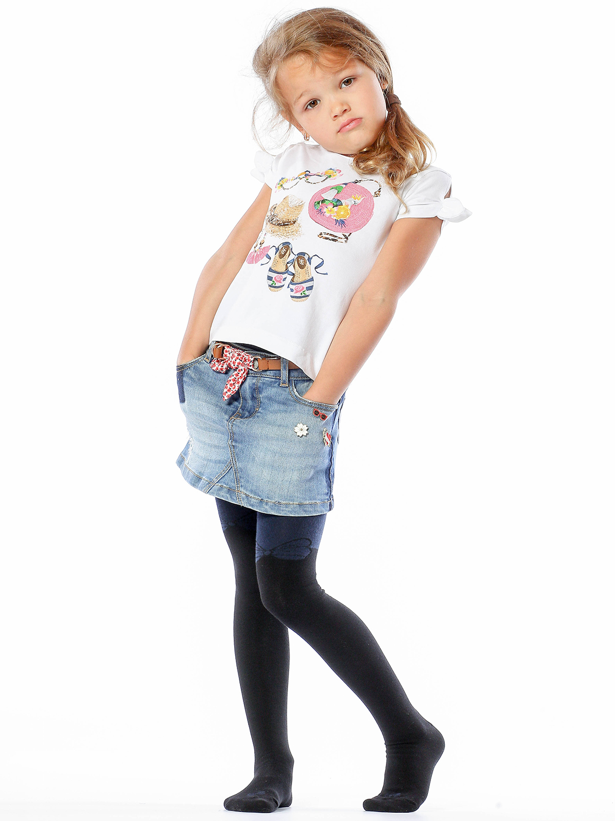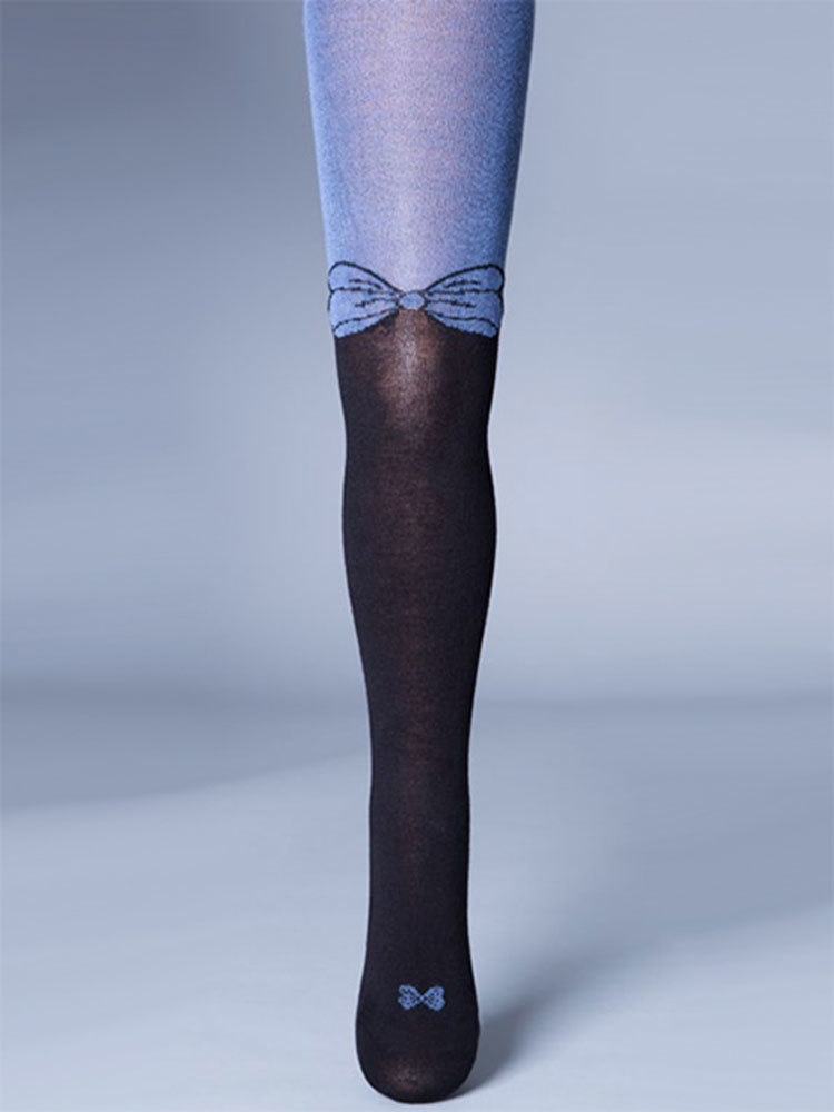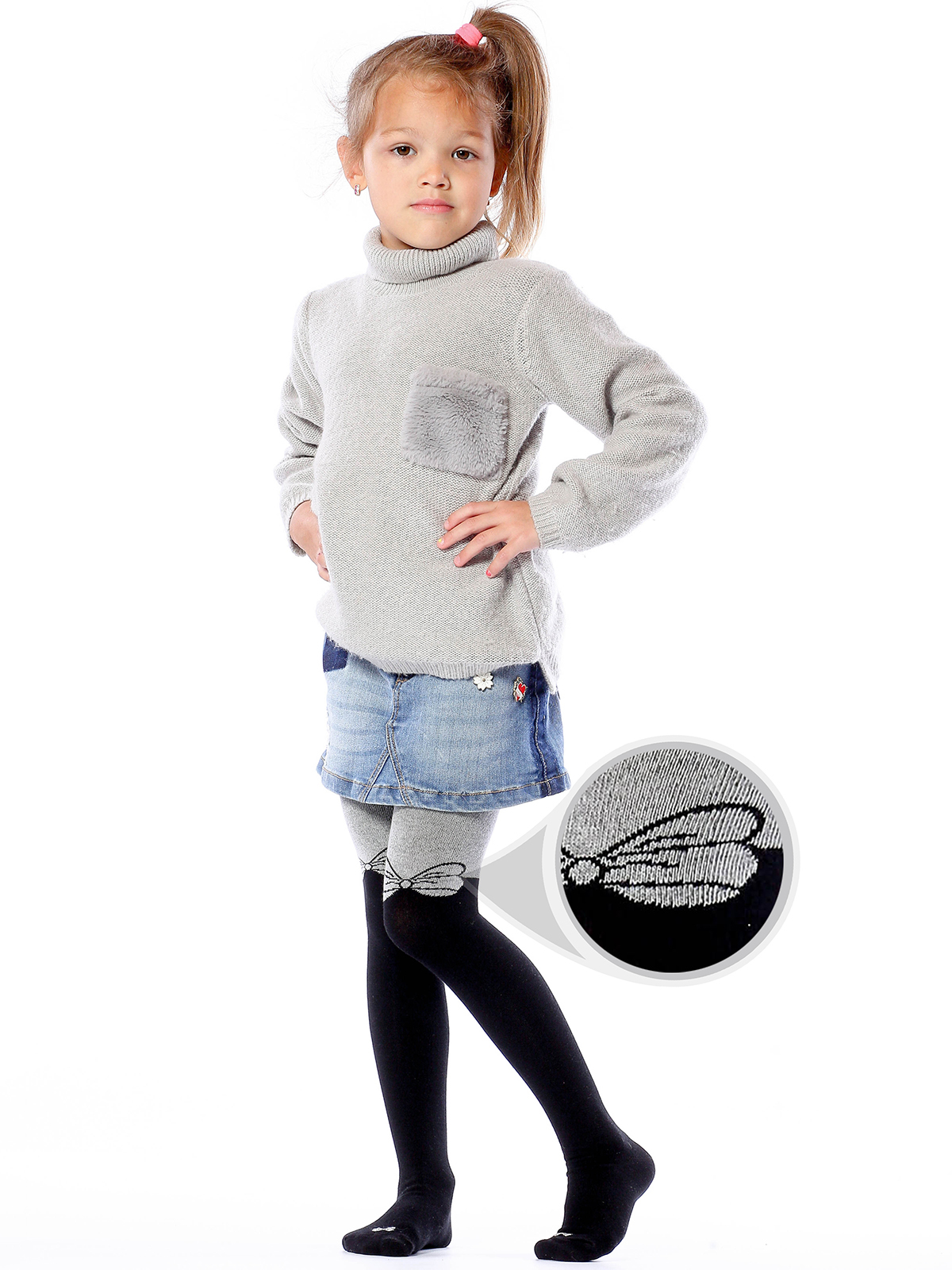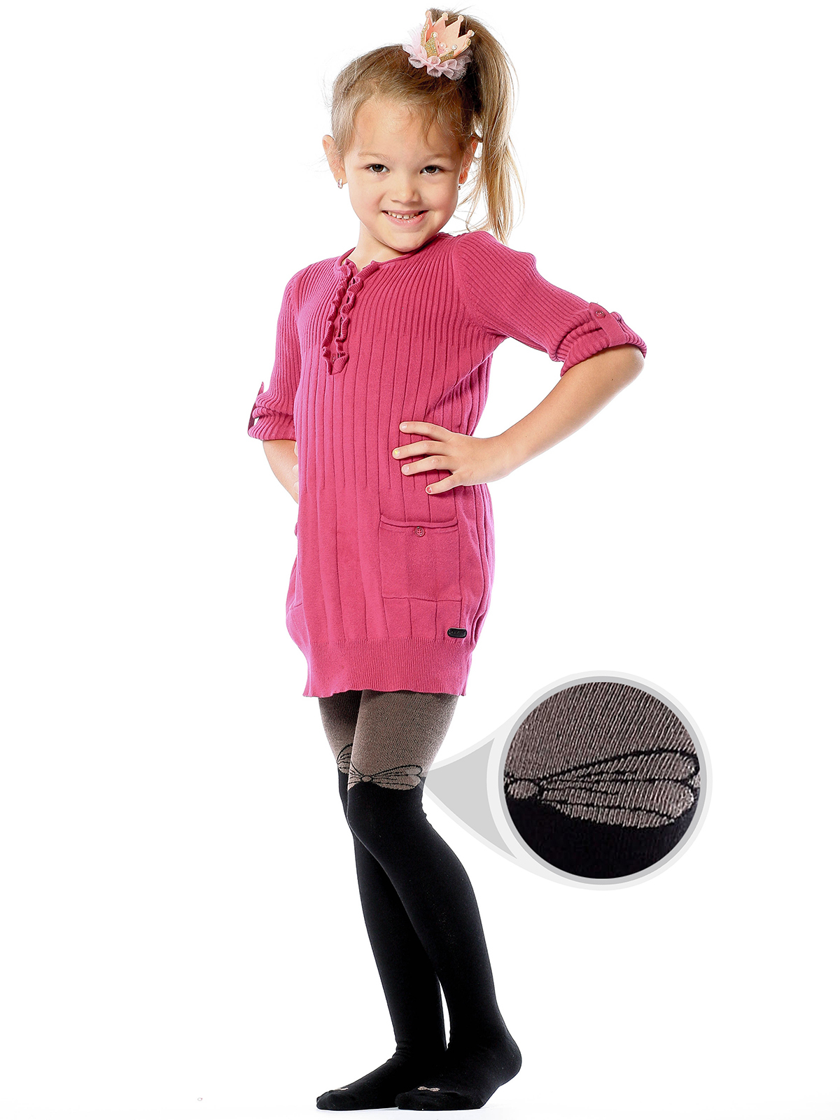 Плотные хлопковые детские и подростковые колготки для девочек с имитацией контрастных ботфортов с узором в виде банттиков. Комфортный широкий пояс, провязанная пяточка, удобная задняя вставка и укрепленный мысок.