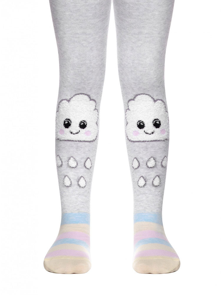 Детские колготки для девочек с забавными объемными пушистыми тучками с дождичком по ножке.