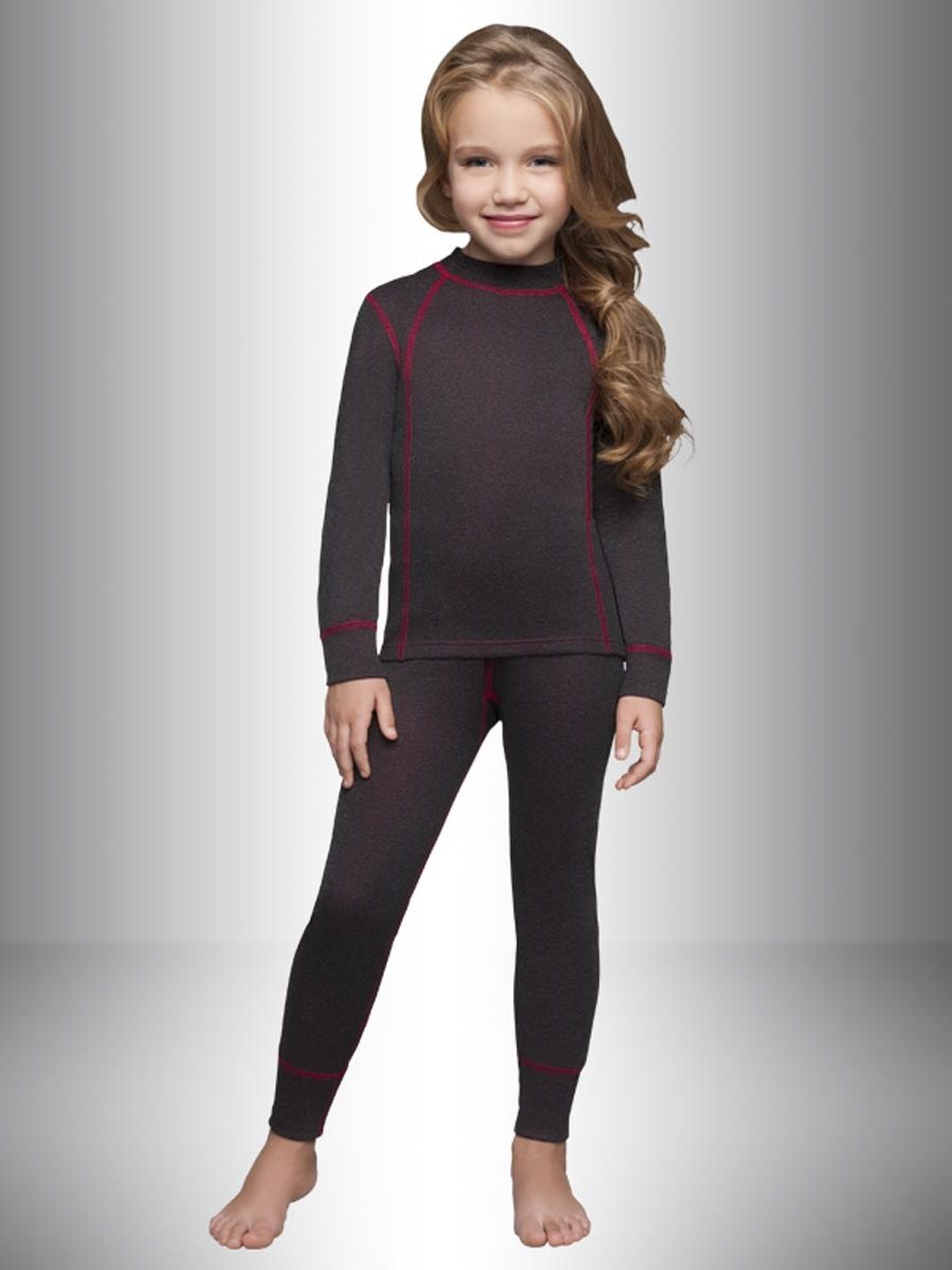 Детскиий комплект термобелья для девочек: футболка-лонгслив и легинсы с двухслойной структурой Dry Mix.