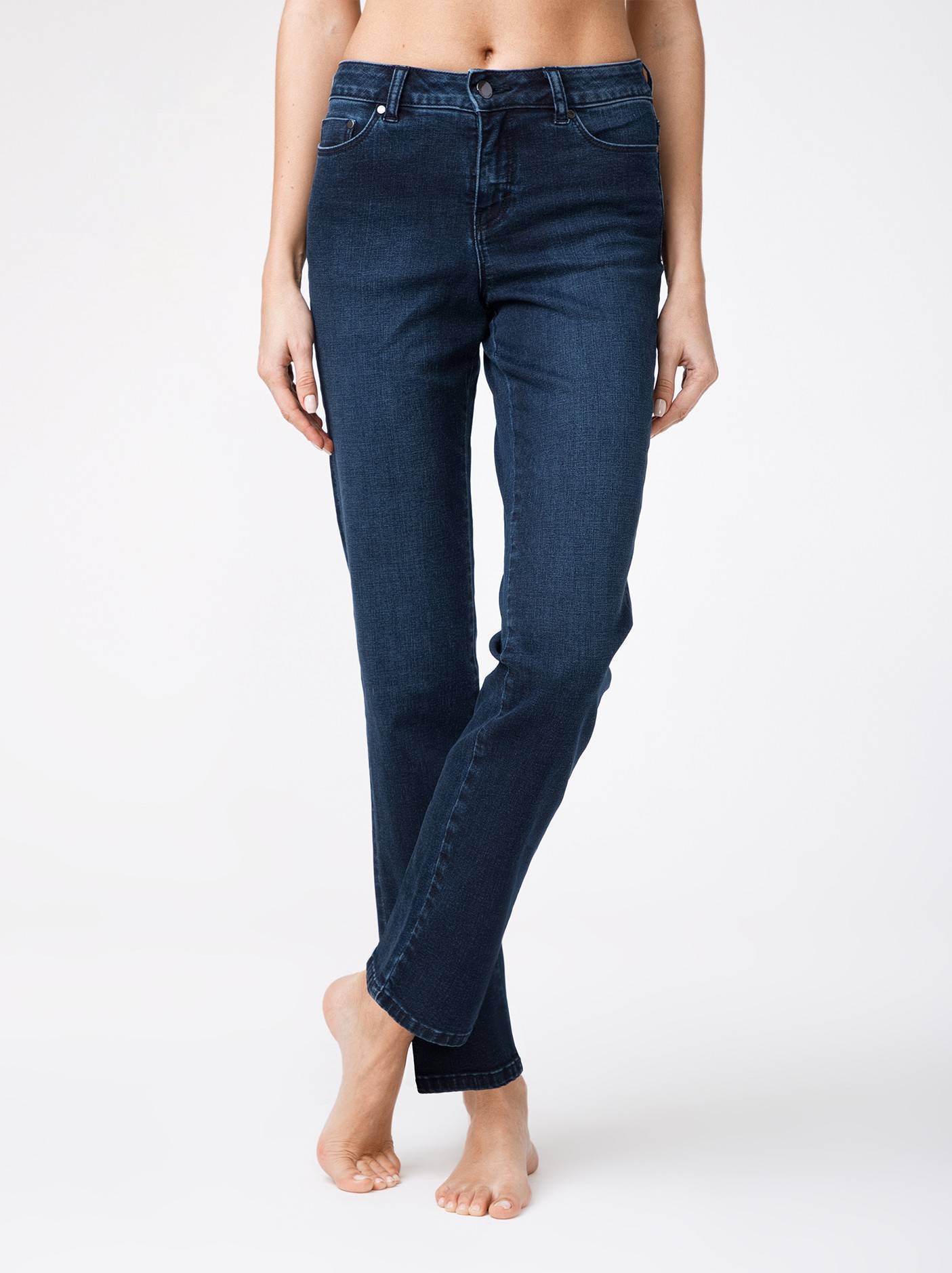 Джинсы подарят Вам чувство комфорта и легкость благодаря особенному крою RELAXED. Свободные в области бедер и ног, и при этом обладающие эффектом «мгновенная коррекция живота», джинсы гарантируют безупречную посадку по фигуре без ограничения в движениях. Вам понравится благородный классический цвет dark blue, который идеально сочетается с любыми вещами женского гардероба.