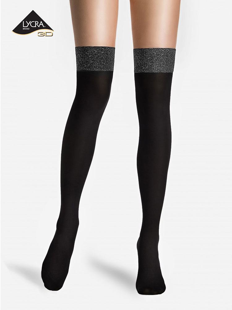 Плотные гольфины (гольфы выше колена) ботфорты из микрофибры плотностью 180 ден с широкой резинкой с люрексом и эффектом трехмерной эластичности 3D. Двухслойная структура материала создает повышенную эластичность и комфорт при носке.