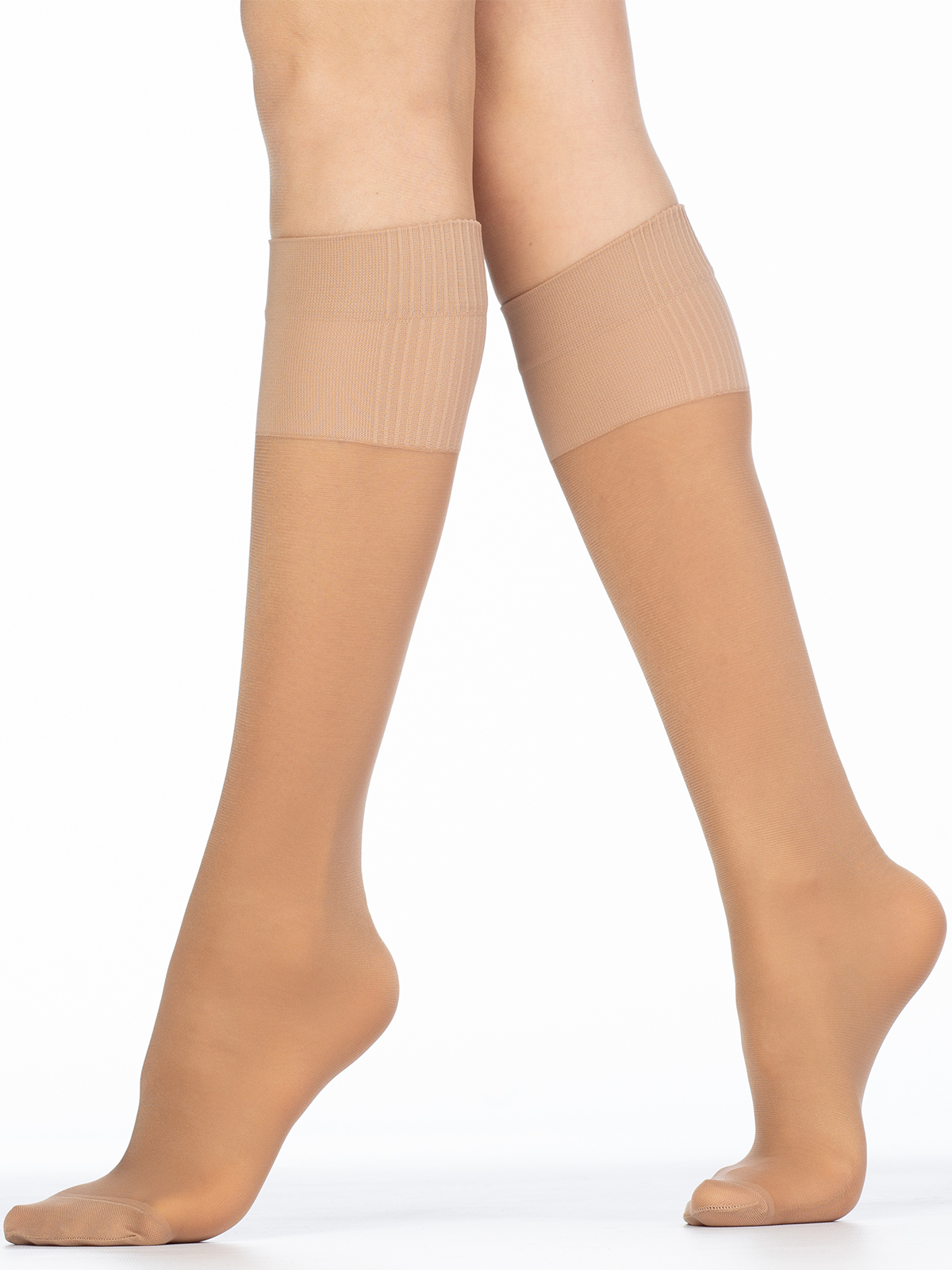 Эластичные полупрозрачные женские гольфы премиум класса средней плотности 40 ден. Полупрозрачная матовая текстура плетения с гладким шелковистым эффектом. Очень комфортная анатомической резинкой, состоящая из двух частей: двубортная резинка шириной - 3,5 см. и широкая эластичная часть шириной - 4 см; гладкая с внутренней части и рельефная с наружной для комфортного удержания без передавливания. Не формованная ножка с укрепленным мыском.