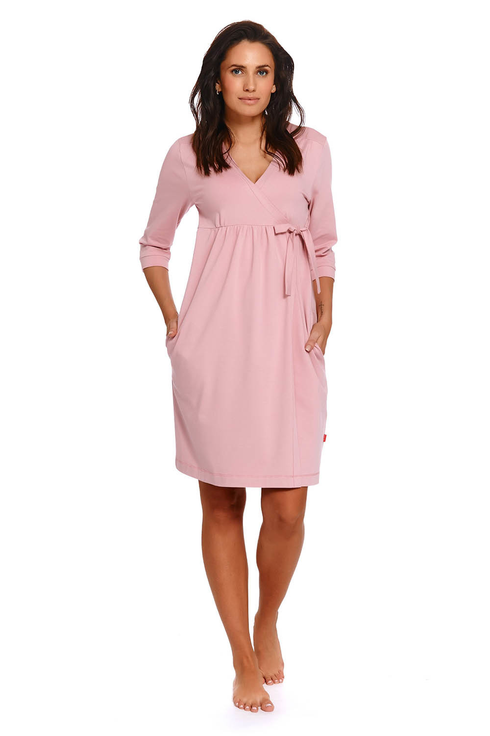 Хлопковый халат SBL.4243 Papaya на запахе с рукавом 3/4. В боковых швах удобные карманы. В этом прекрасном халате вы будете выглядеть очень женственно.