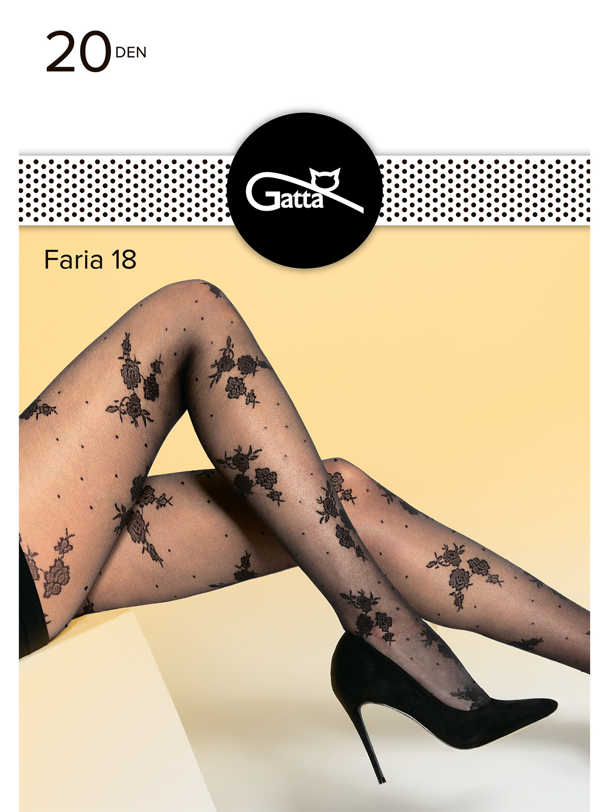 Тонкие фантазийные колготки с лайкрой, плотностью 20 ден, с широким комфортным поясом, гигиеничной ластовицей и усиленными плоскими швами. Вся модель украшена тканым узором "горошек и розочки".