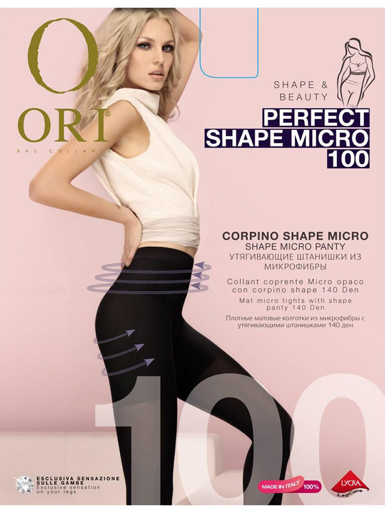 Непрозрачные плотные корректирующие женские колготки из микрофибры плотностью 100 ден с утягивающими шортиками. Специальная верхняя часть из эластичной микрофибры повышенной плотности 140 ден с эффектом трёхмерной эластичности 3D, выполняющая утягивающий эффект от по линии талии, живота, ягдиц и бёдер. Делают талию более стройной, живот плоским, уменьшают объём бёдер, моделируют и приподнимают ягодицы. Гигиеническая хлопковая ластовица, формованная ножка, плоские соединительные швы, укреплённые мыски и комфортный пояс резинка шириной 4 см.