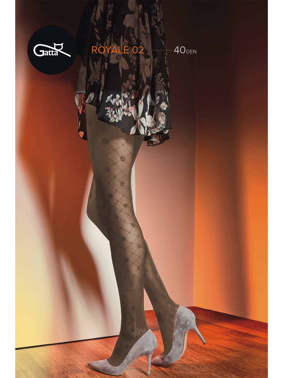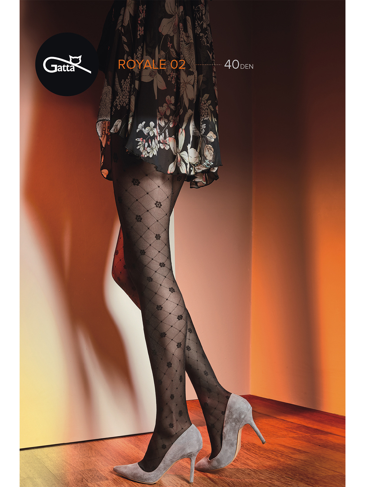 Прозрачные фантазийные колготки с лайкрой, плотностью 40 ден, с широким комфортным поясом, ластовицей и усиленными плоскими швами. По всей ноге модели размещен тканый узор "сетка с цветами".