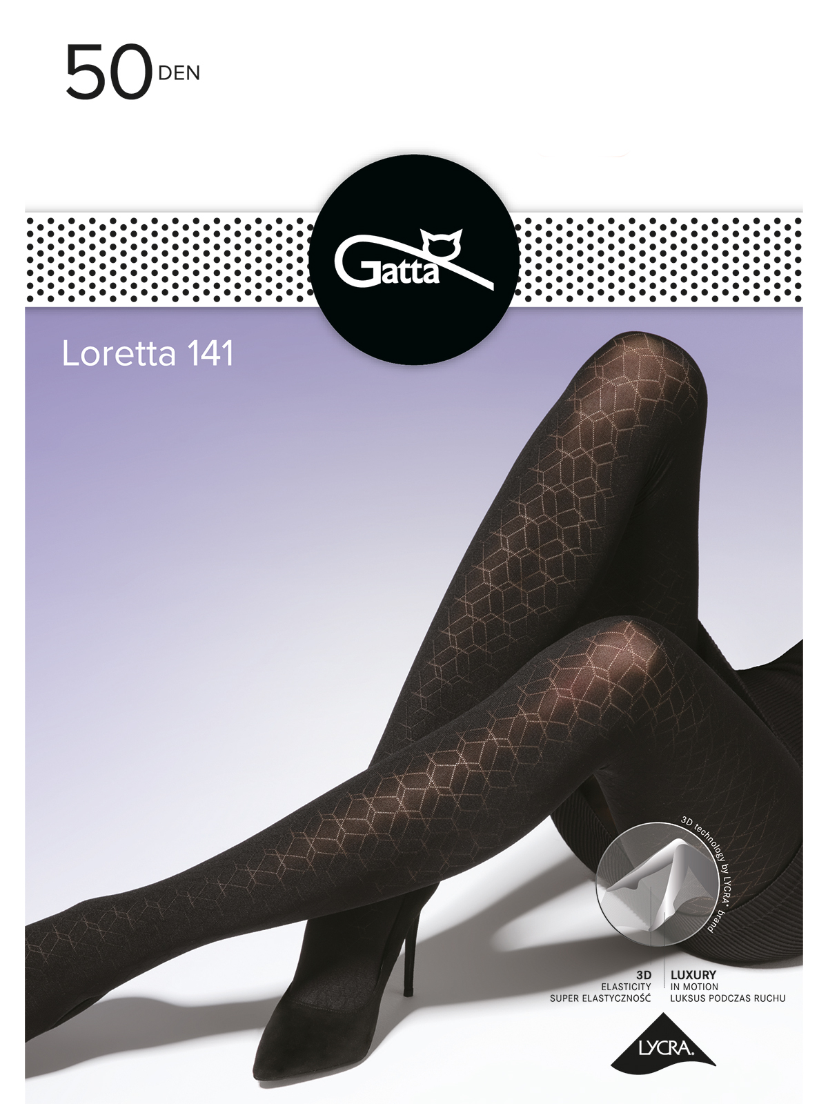 Непрозрачные фантазийные женские колготки из мягкой микрофибры трёхмерной эластичности 3D плотностью 50 ден с геометрическим рисунком. Комфортный широкий пояс резинка, анатомическая ластовица, удобные плоские соединительные швы.