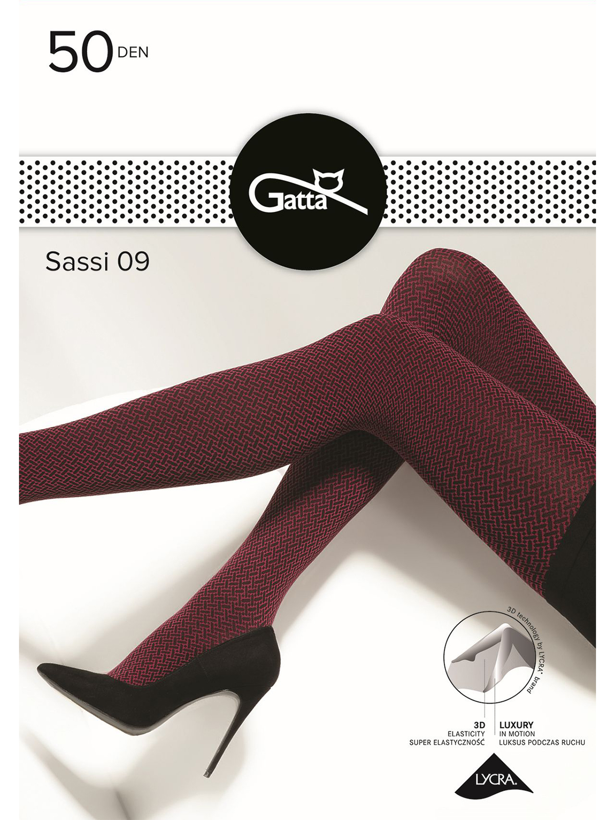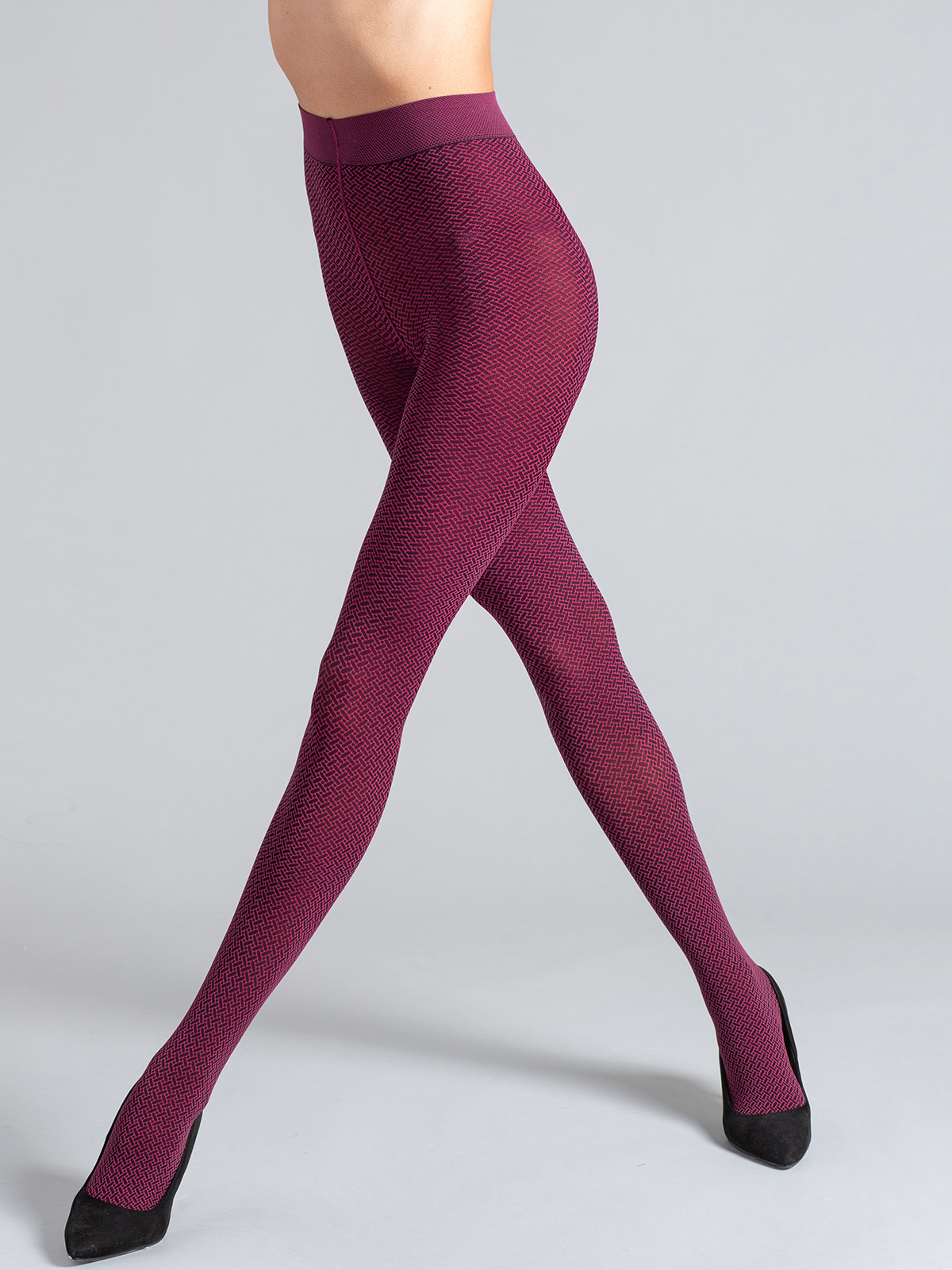 Непрозрачные фантазийные колготки из микрофибры c лайкрой 3D, плотностью 50 ден, с комфортным широким поясом, ластовицей и плоскими швами. Вся нога модели украшена контрастным узором "геометрические фигуры".