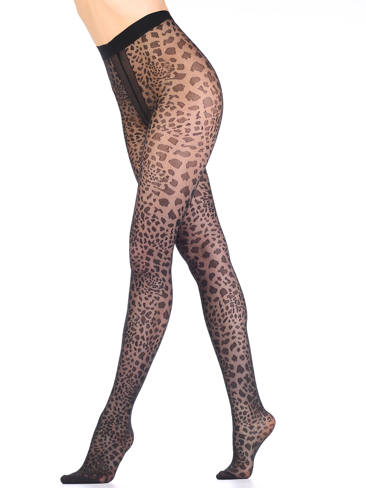 Прозрачные фантазийные колготки с лайкрой, плотностью 20 ден, с широким комфортным поясом, ластовицей и плоскими швом. Вся нога модели украшена эффектным гепардовым принтом.