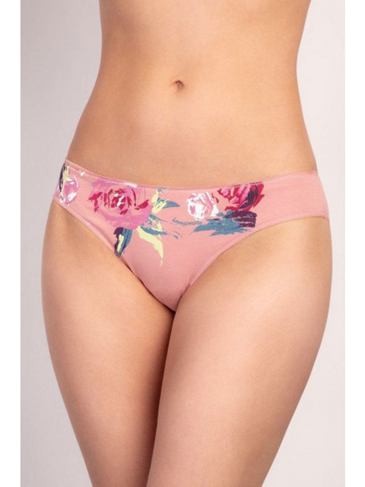Комплект из трёх фантазийных женских цветных трусов слип с узкой боковой частью и печатным рисунком. Классическая средняя линия талии.