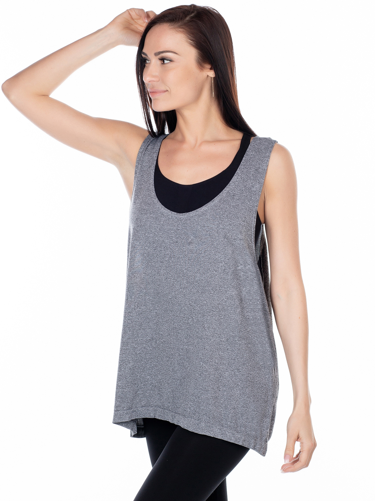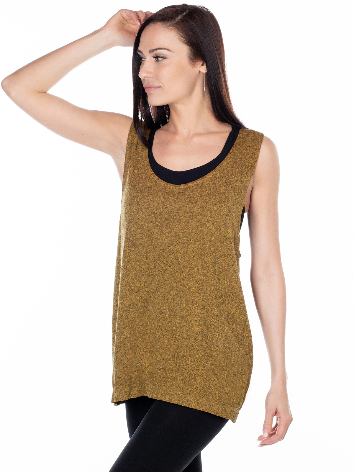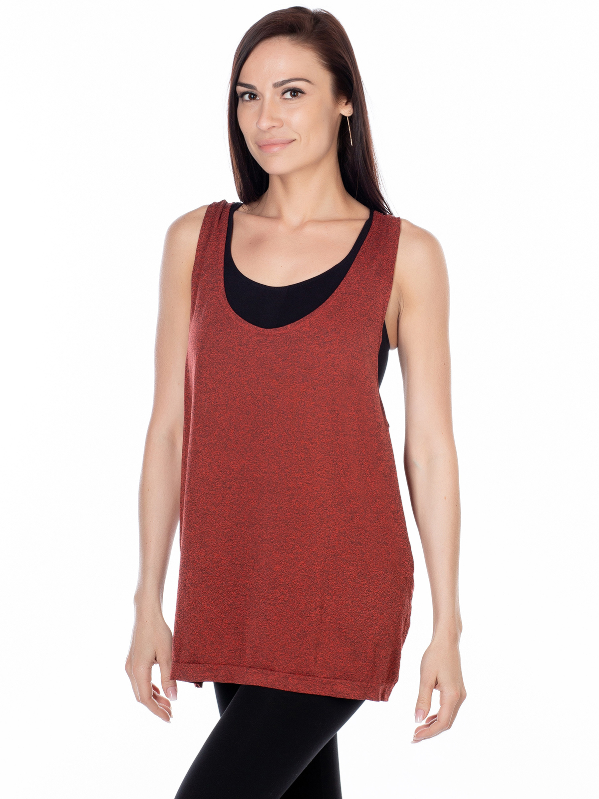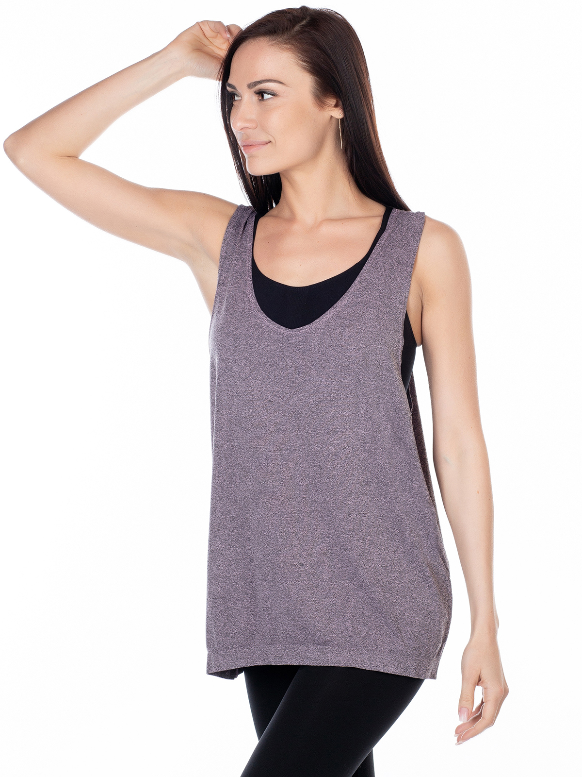 Спортивная женская майка с широкими бретелями и глубоким овальным вырезом, выполненная из мягкой дышащей микрофибры с меланжевым эффектом. Яркая цветовая гамма модели позволит выделиться из толпы и подчеркнуть индивидуальность.
