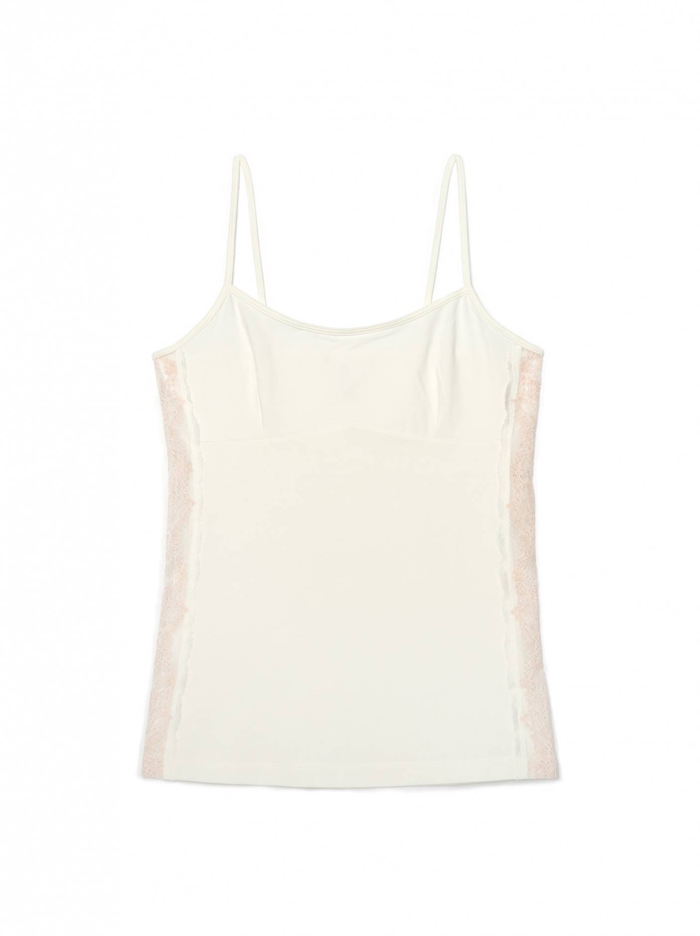 Классическая женская майка на тонких бретельках с кружевной вставкой на боках.