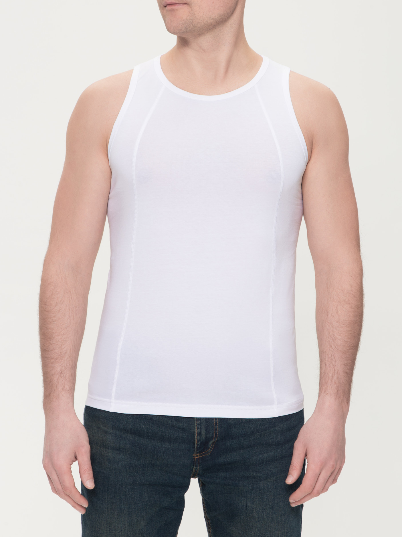 Хлопковая майка без рукавов идеально подходит на каждый день: ткань не просвечивается и не растягивается при активной носке. По переду и спинке выполнены рельефные швы. Майка практична и хорошо сохраняет форму даже после многочисленных стирок.