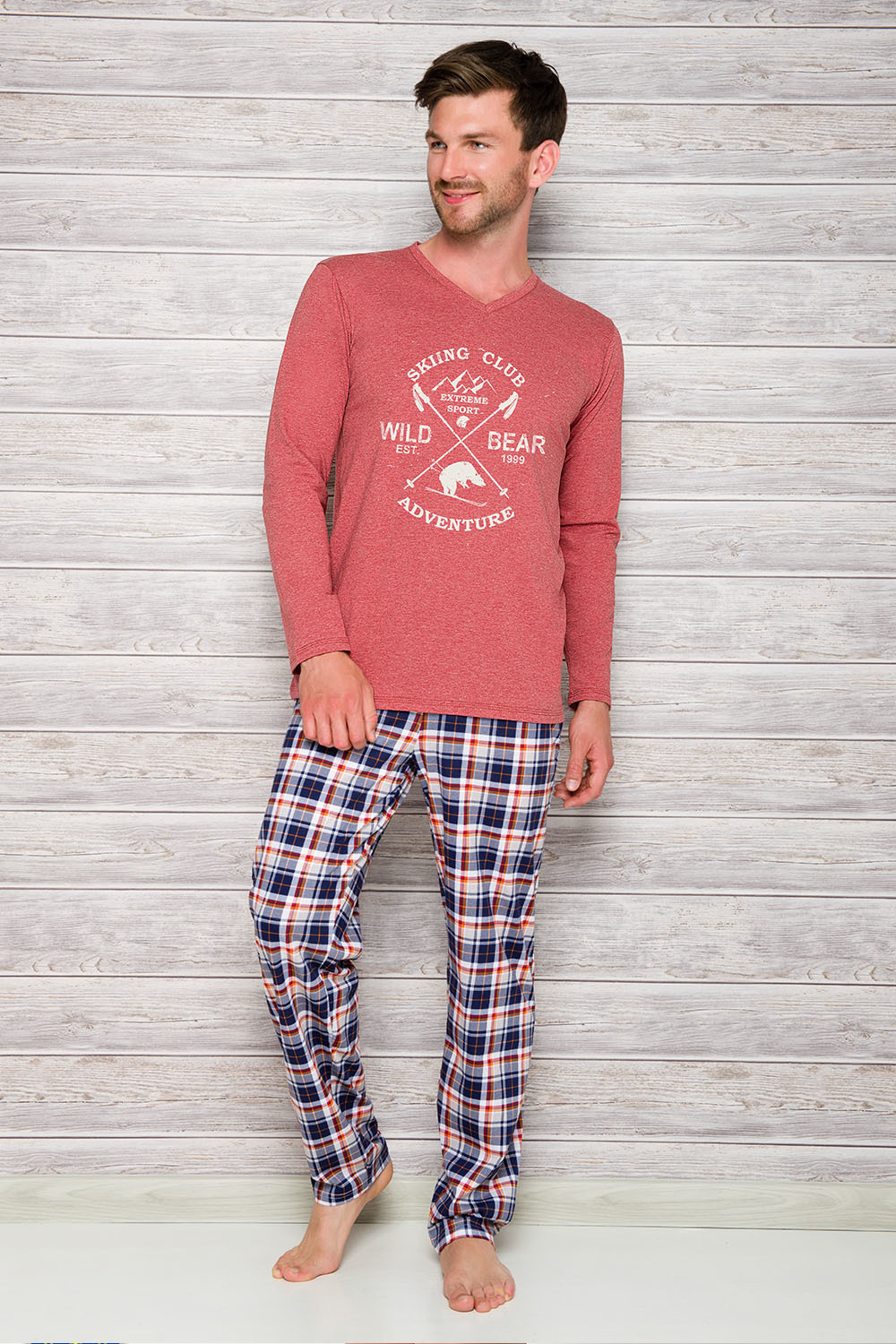Красная футболка с длинным рукавом + клетчатые штаны Arek