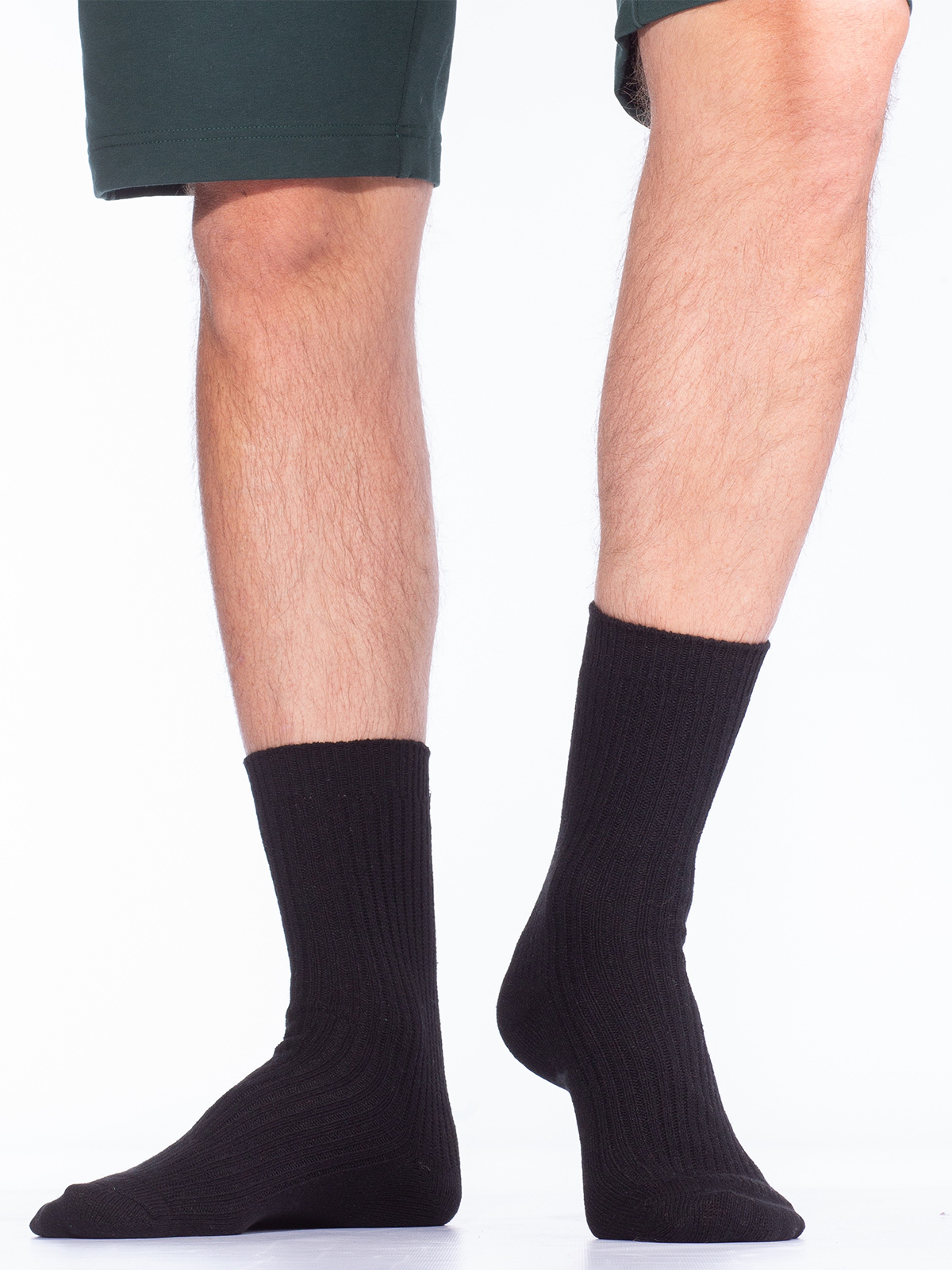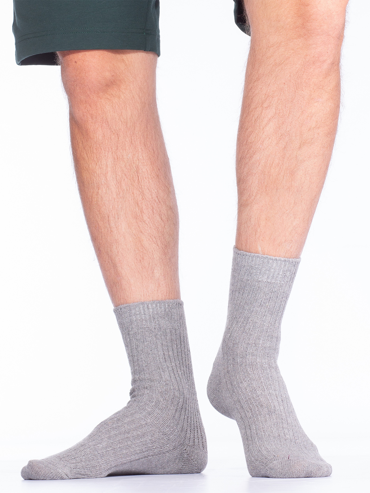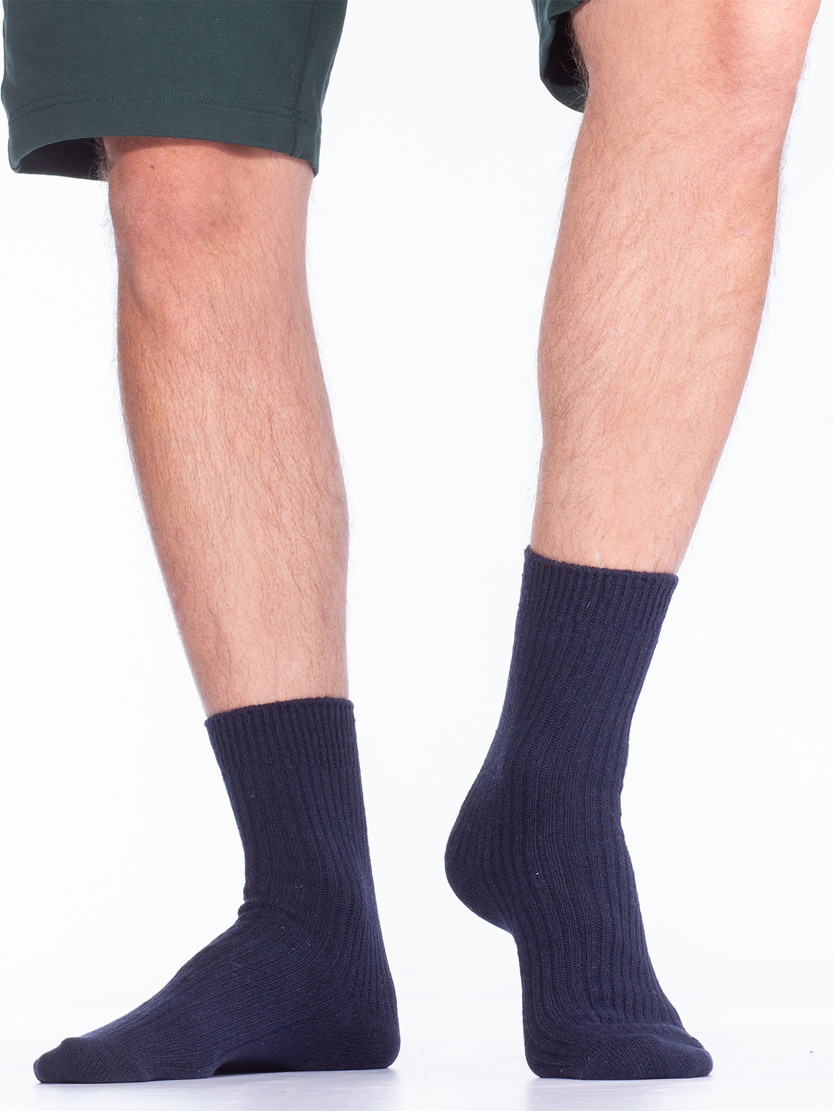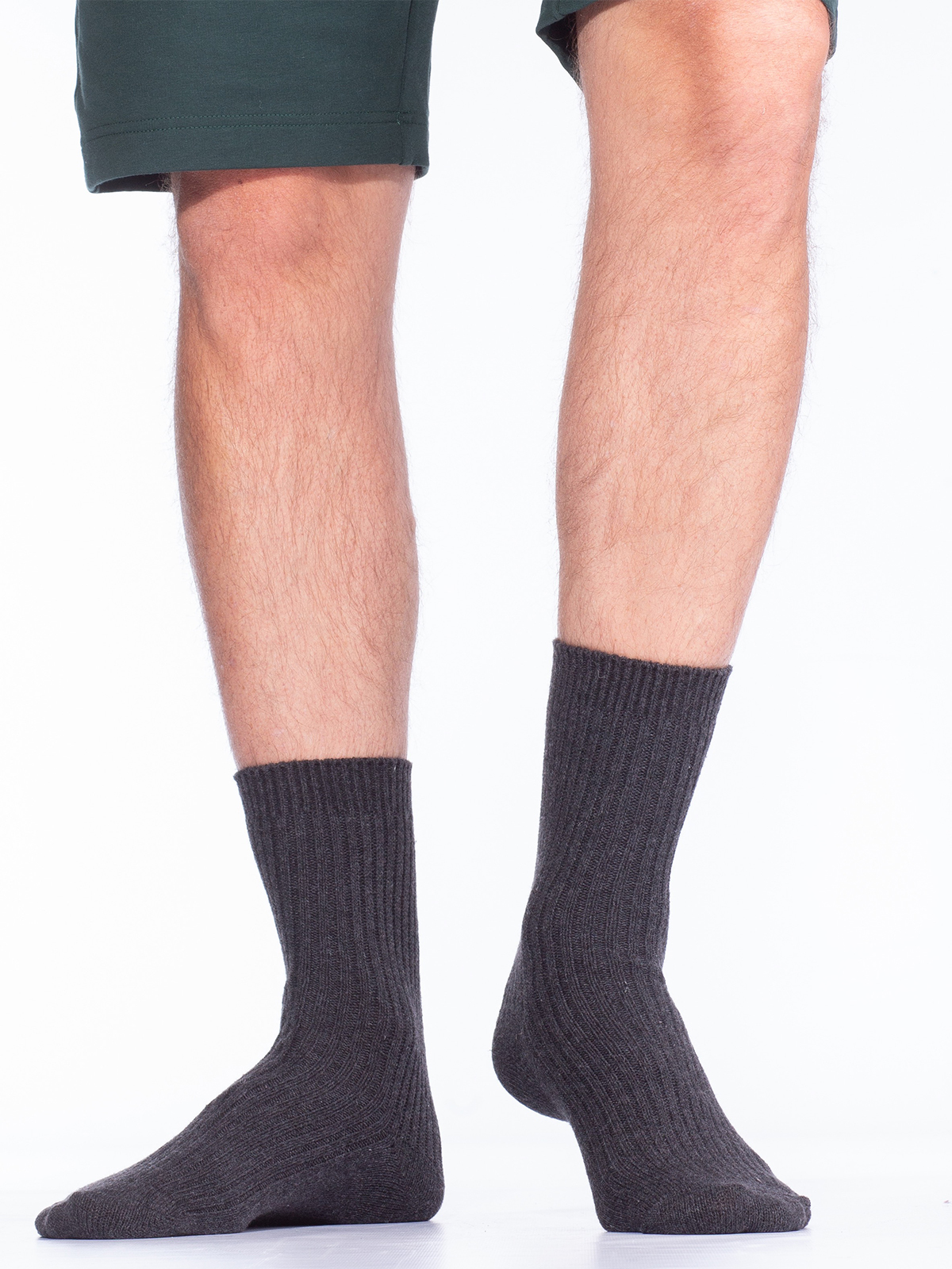 Теплые мужские носки из ангоры и акрила, однотонные, с широкой комфортной резинкой. По всей длине модели размещен узор в виде вертикальных полосок.