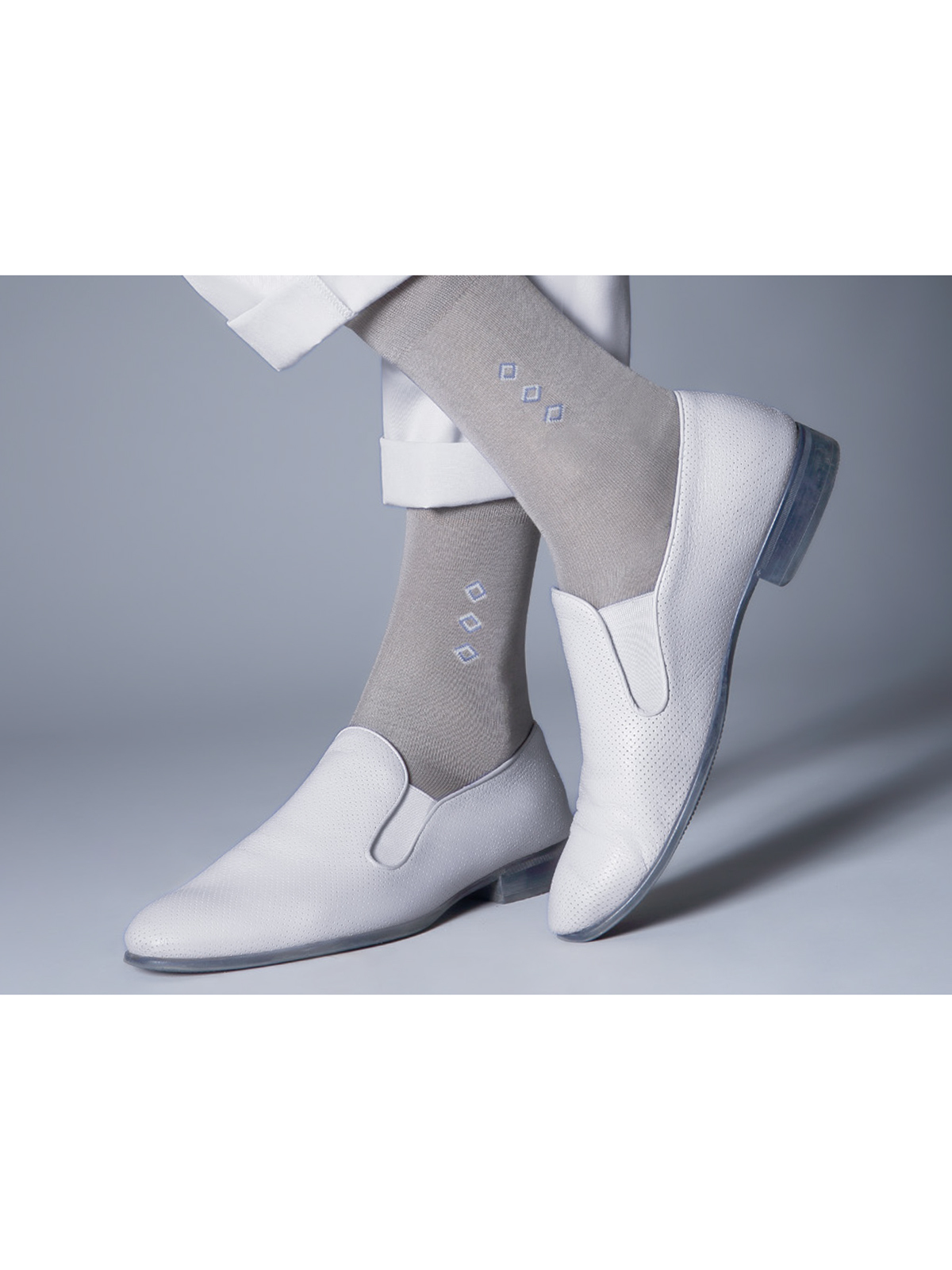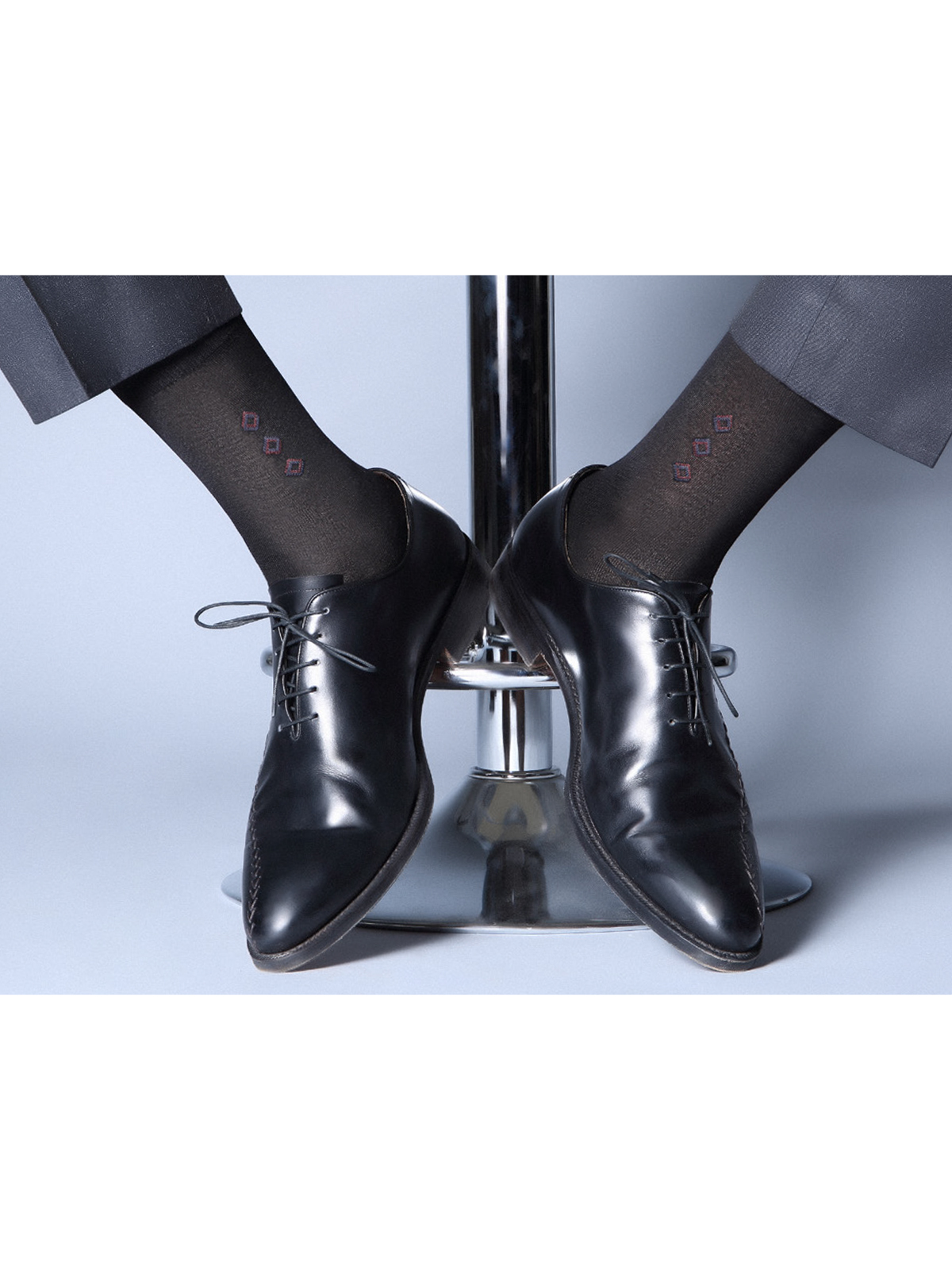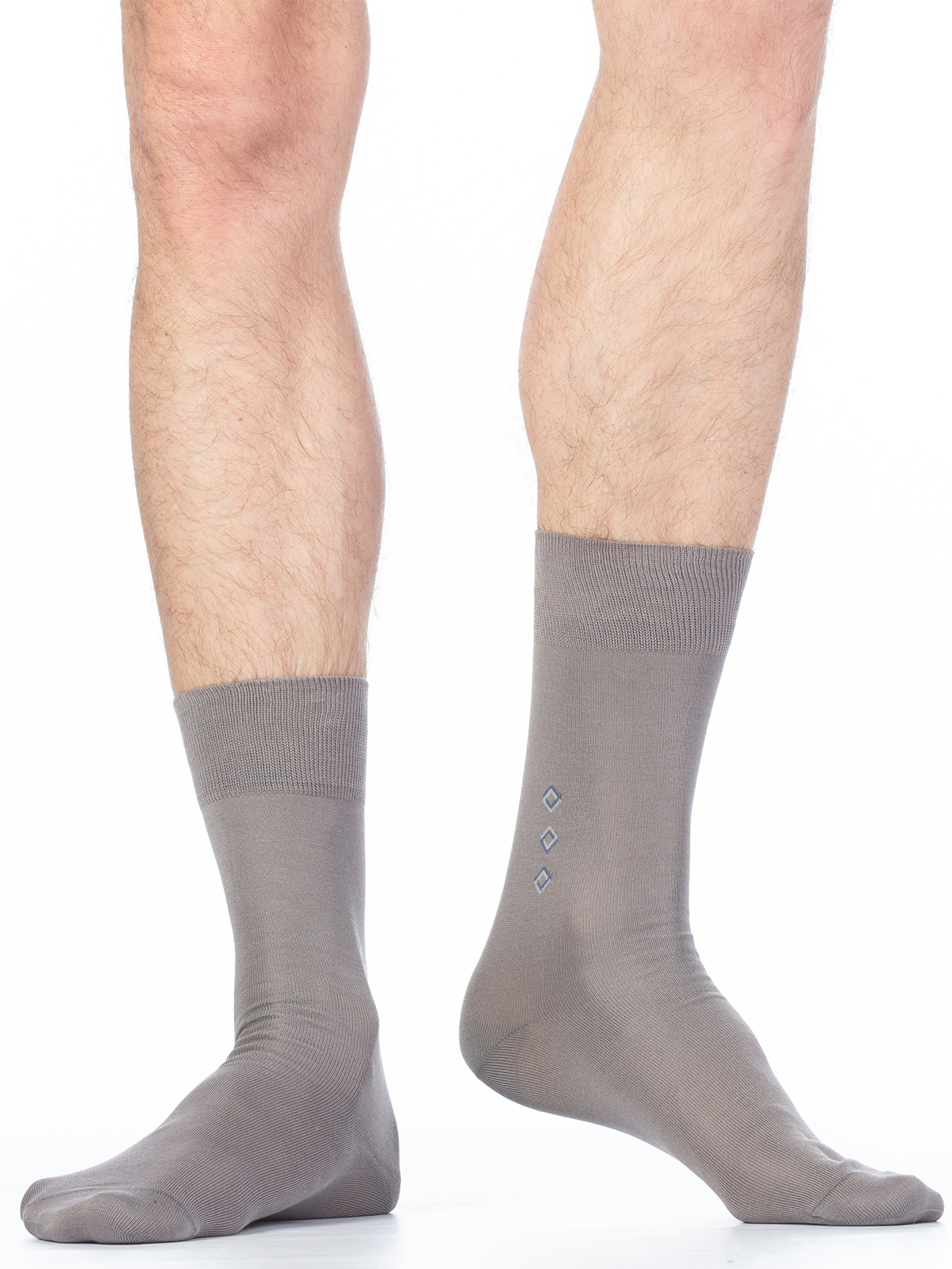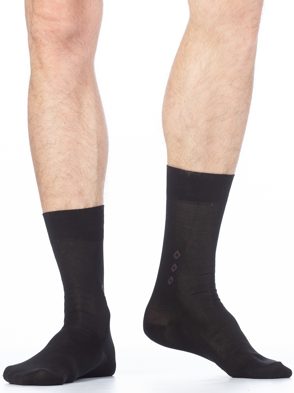 Премиальные мужские носки из мерсеризованного хлопка с боковым узором "ромбы". Пятка и мысок модели усилены, резинка не сползает и не передавливает ногу.