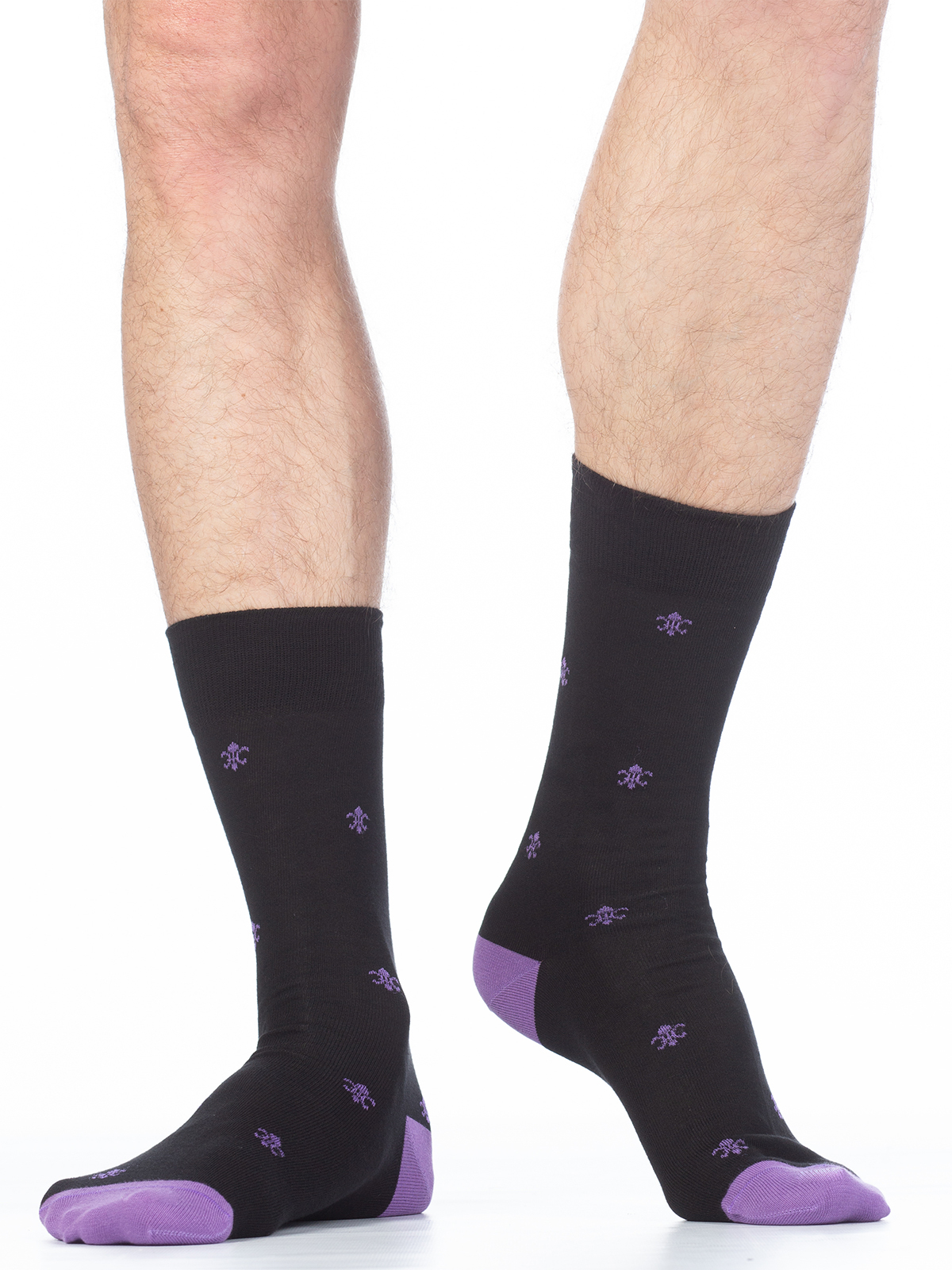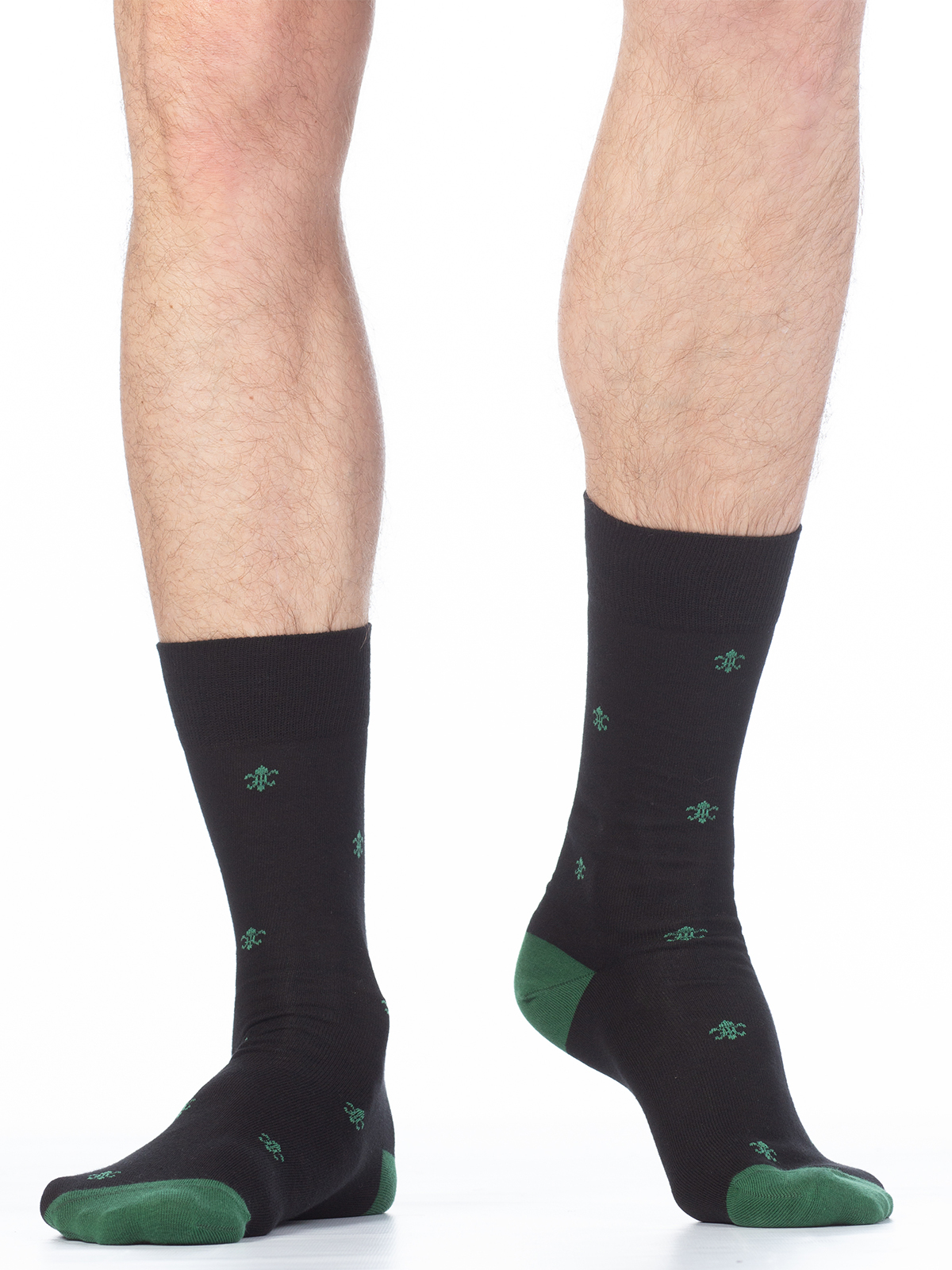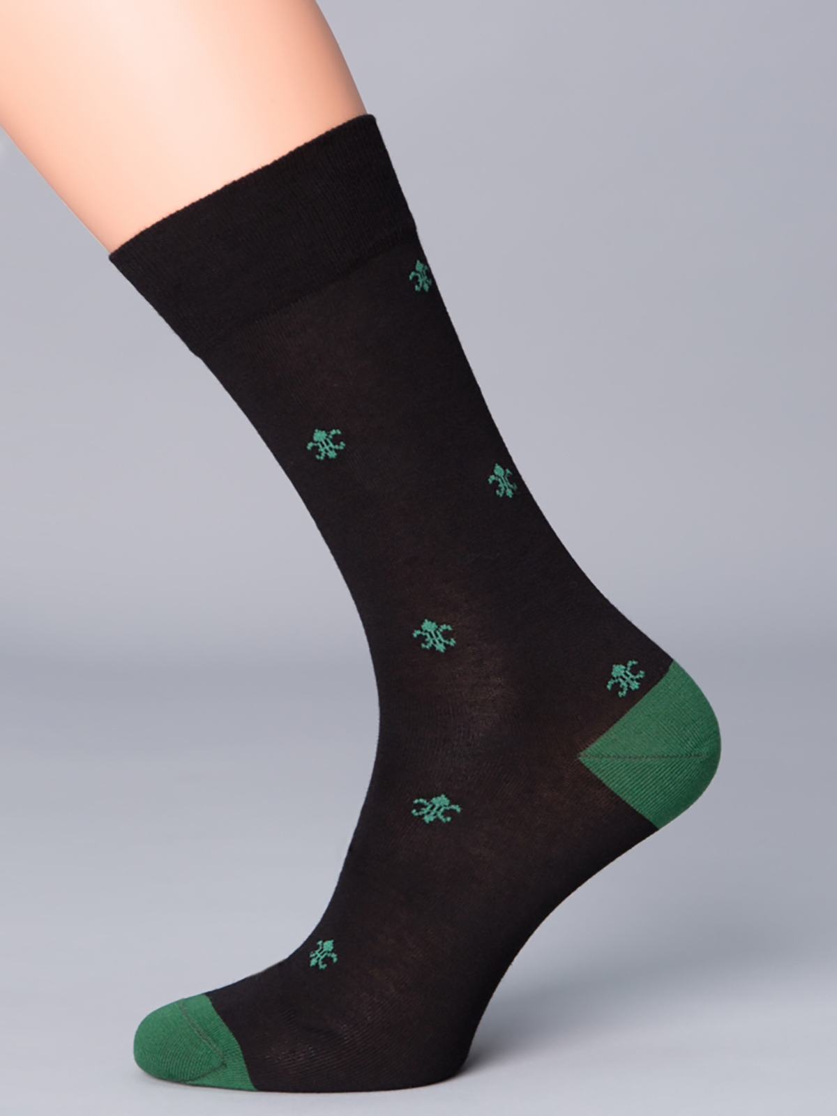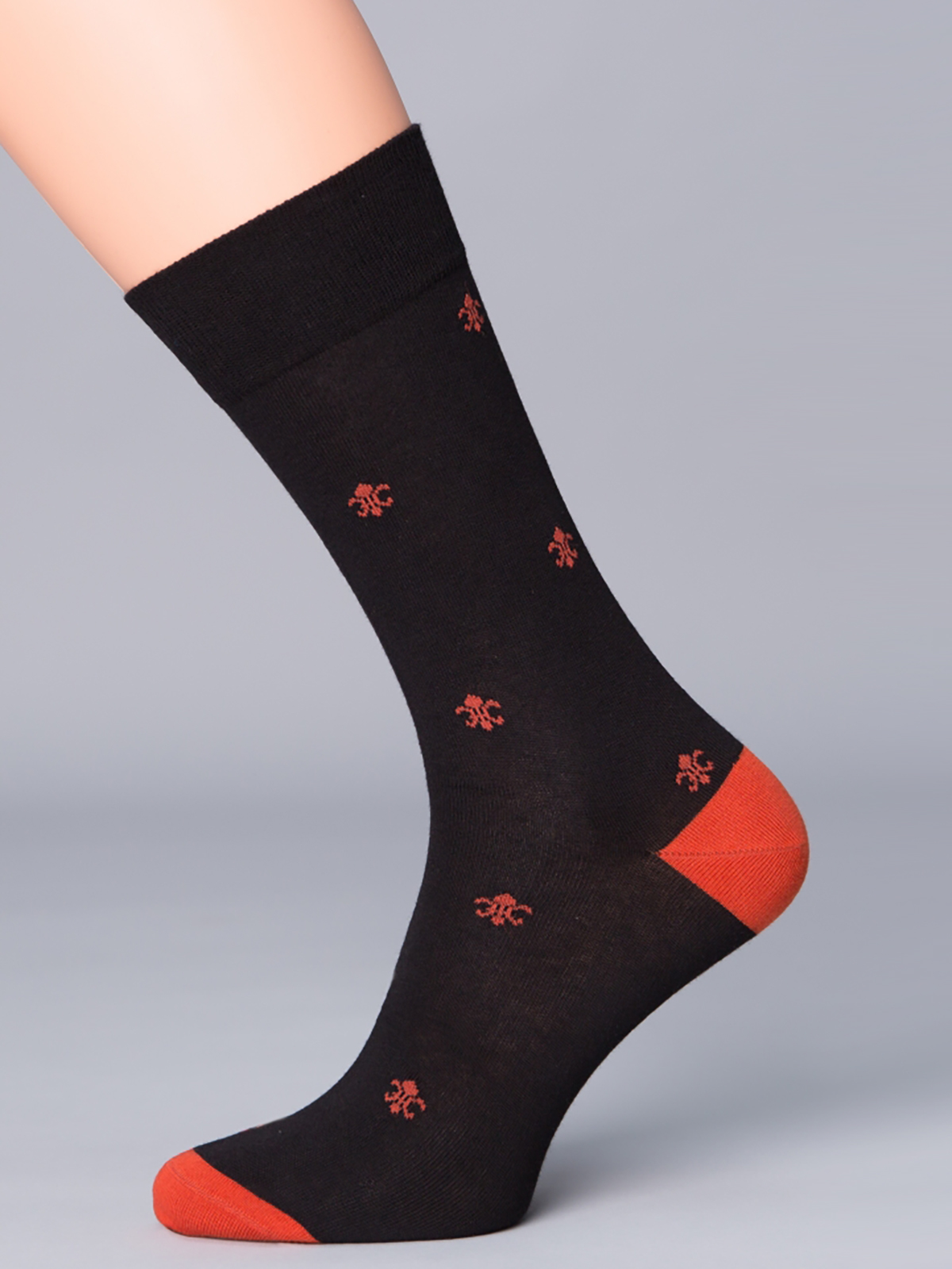 Премиальные мужские носки из мерсеризованного хлопка с ярким этническим орнаментом "флер-де-лис". Пятка и мысок модели усилены, анатомическая резинка не сползает и не передавливает ногу.