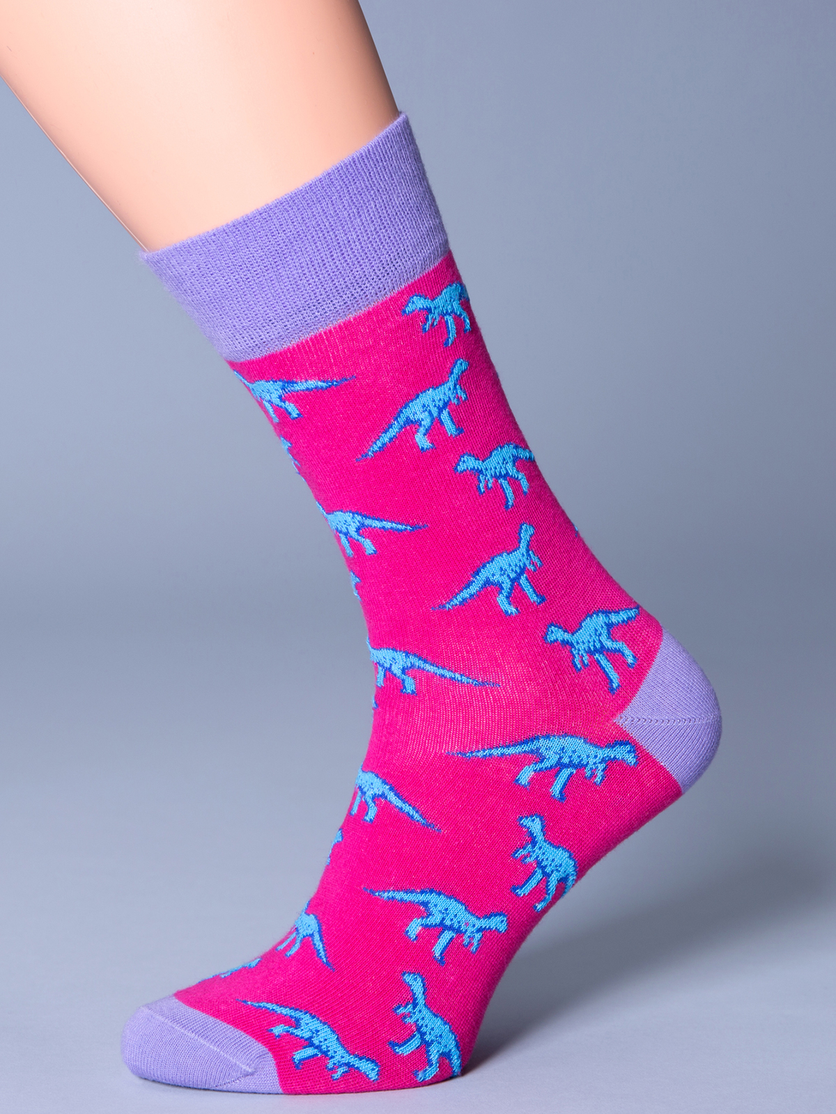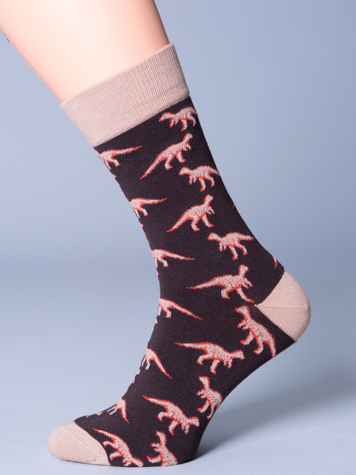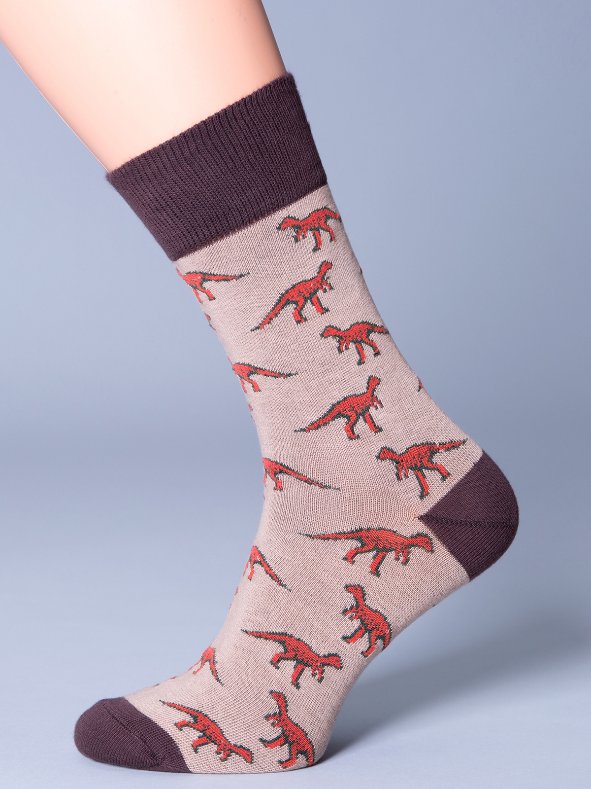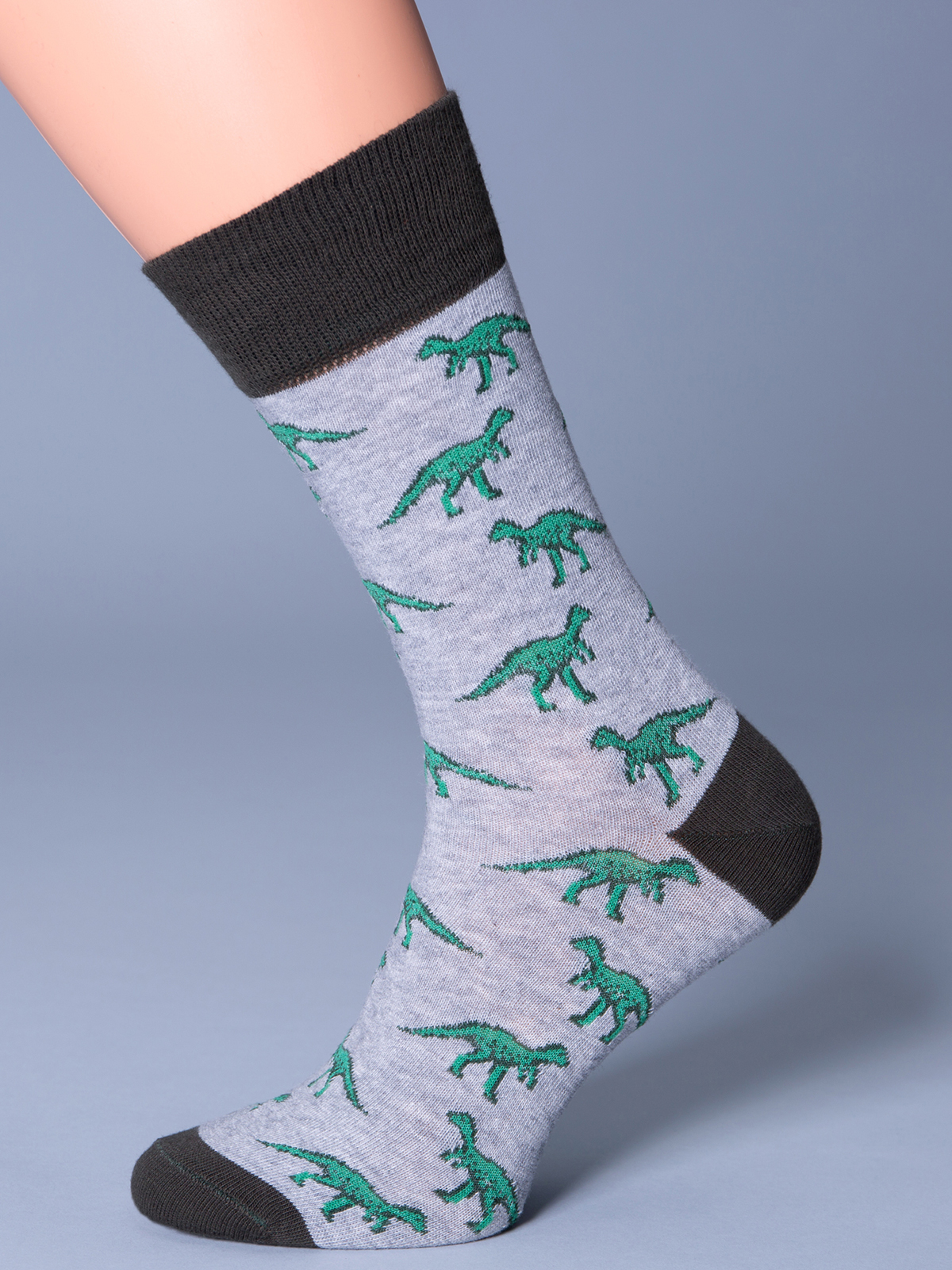Мужские фантазийные носки из хлопка с эластаном, резинка, пятка и мысок контрастного тона, рисунок "динозавры".
