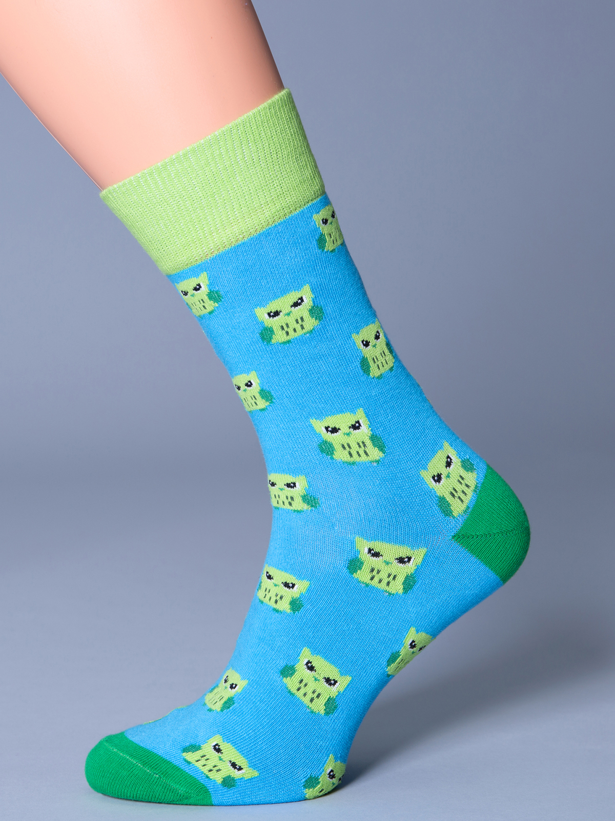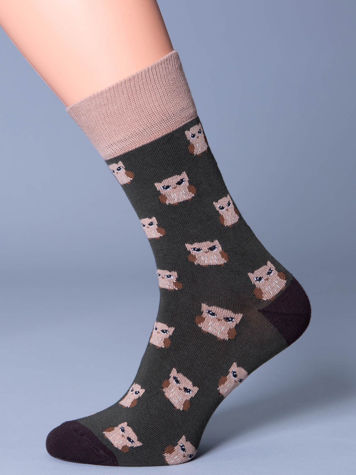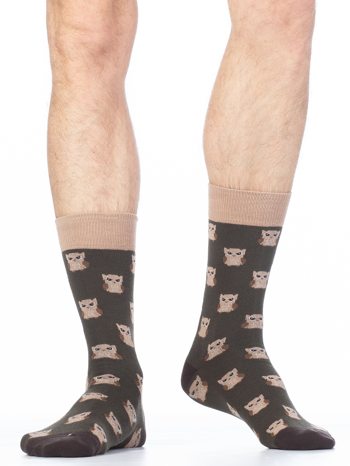 Мужские фантазийные носки из хлопка с эластаном, резинка, пятка и мысок контрастного тона, рисунок "совята".