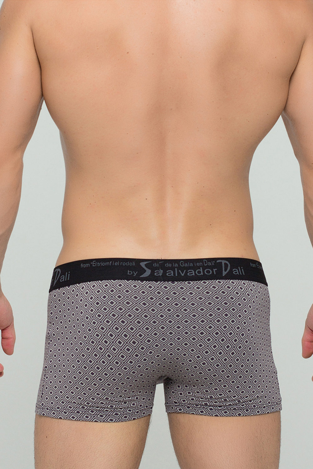 Мужские трусы-боксеры 2017 серого цвета, пояс на широкой резинке с надписью "Salvador Dali" по кругу.