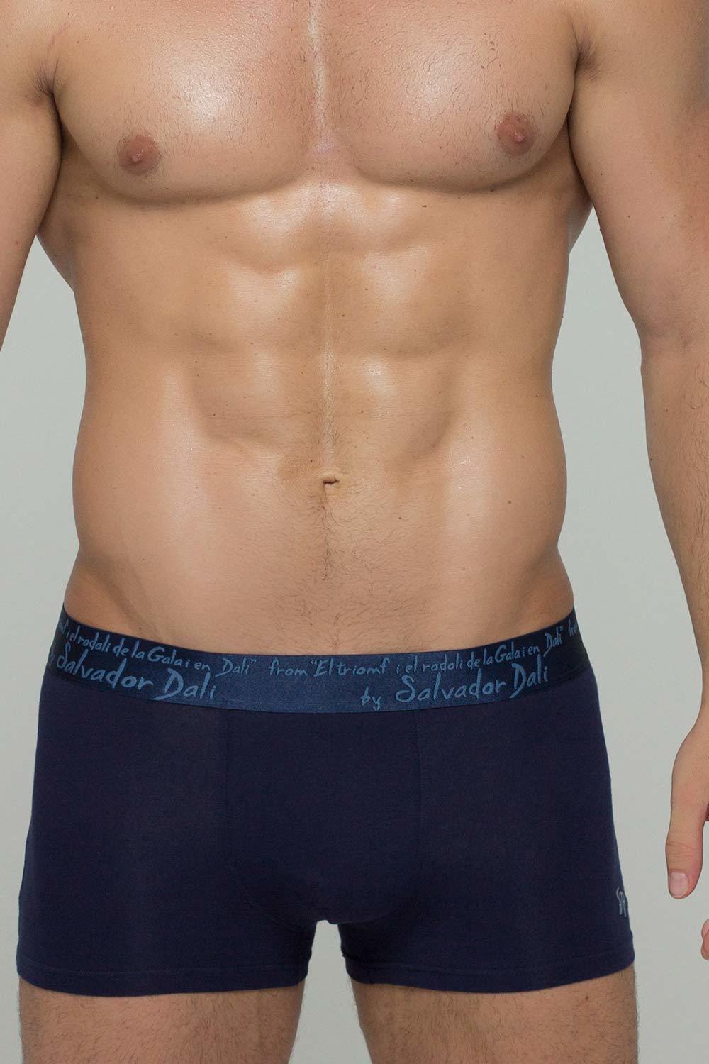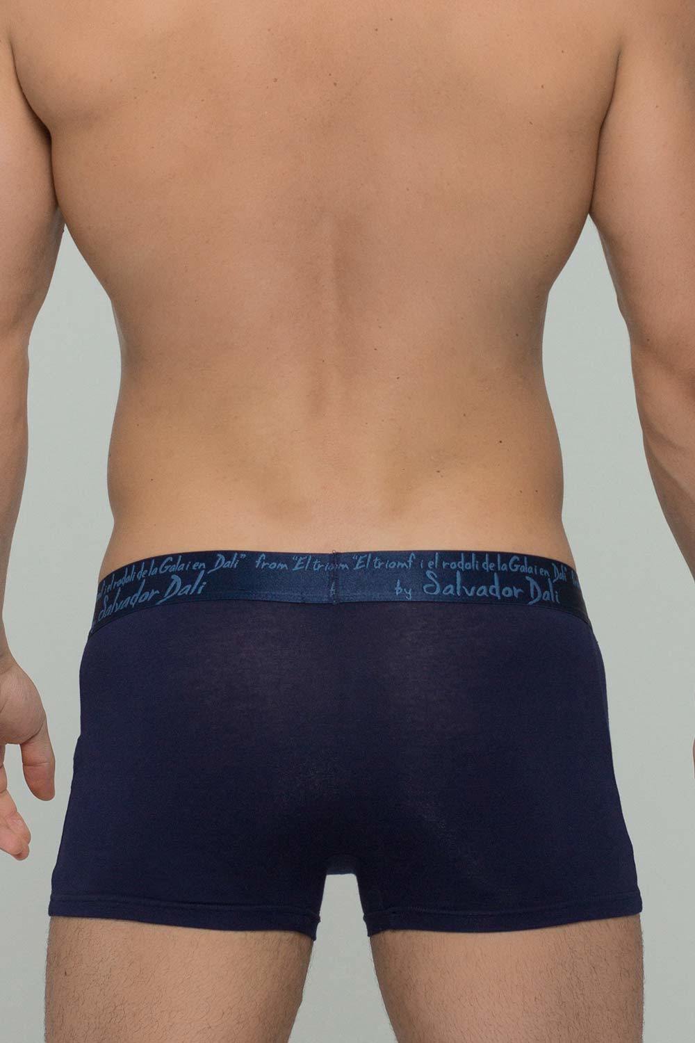 Мужские обтягивающие трусы-боксеры 2022-4 тёмно-синего цвета с гладкими внутренними швами, основа шелковистая, идеально облегают тело и пригодны для носки с узкими видами джинс и штанов.