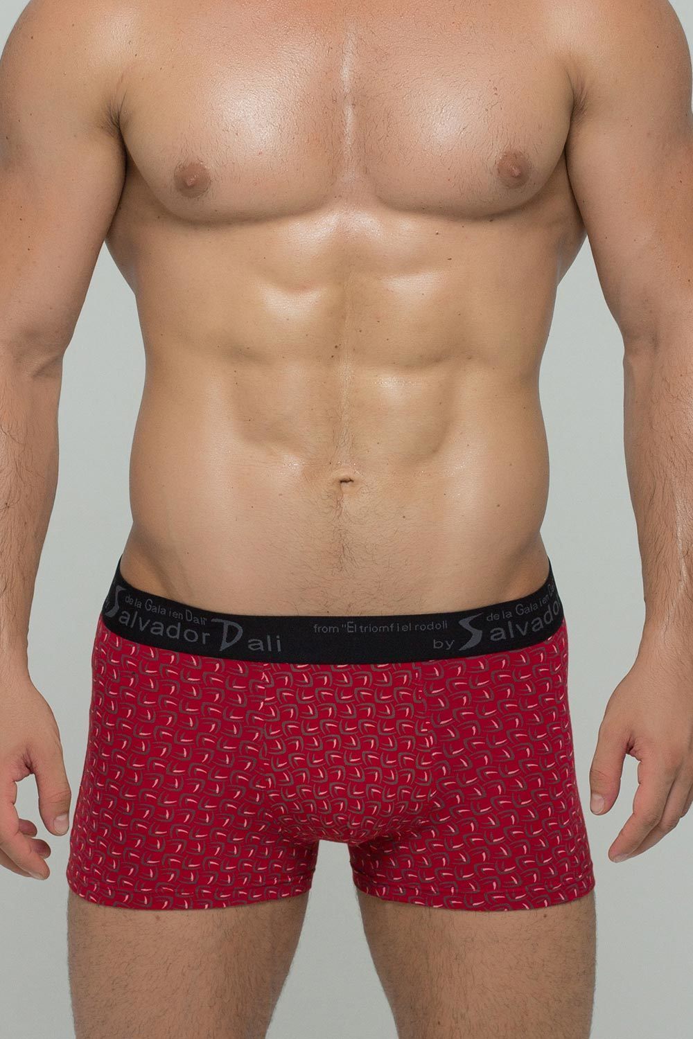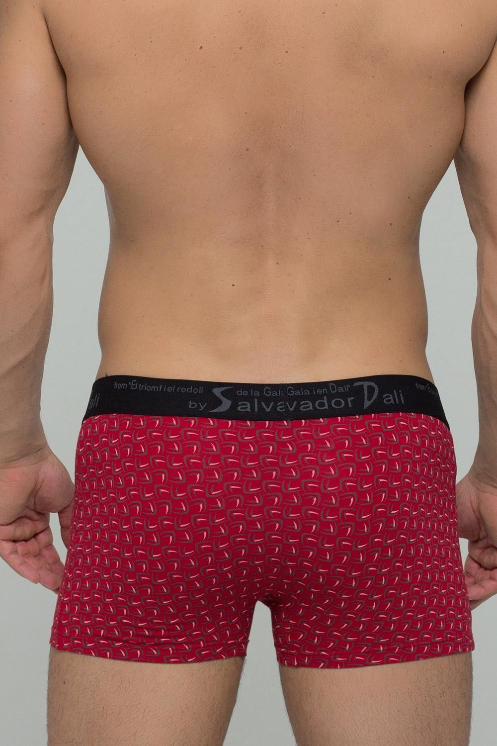 Мужские обтягивающие трусы-боксеры 2023 бордового цвета с гладкими внутренними швами, основа хлопковая. Пояс на широкой резинке с надписью "Salvador Dali" по кругу. Трусы идеально облегают тело и пригодны для носки с узкими видами джинс и штанов.
