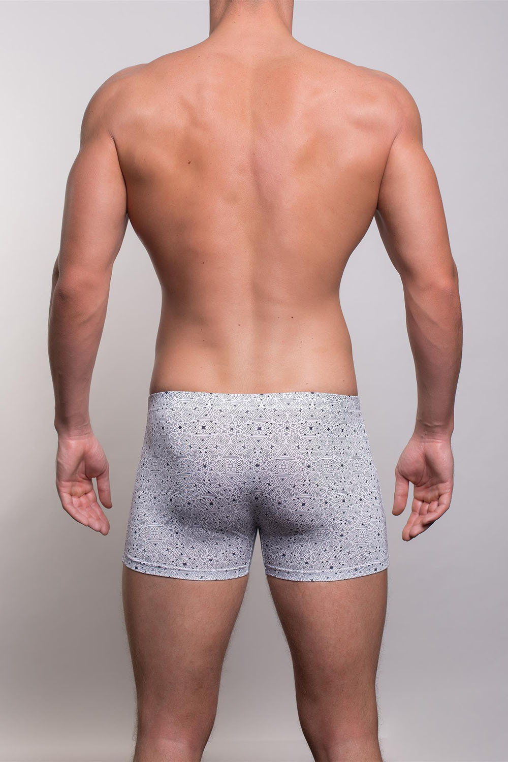 Мужские обтягивающие трусы-боксеры 2041-3 серого цвета с гладкими внутренними швами. Трусы идеально облегают тело и пригодны для носки с узкими видами джинс и штанов.