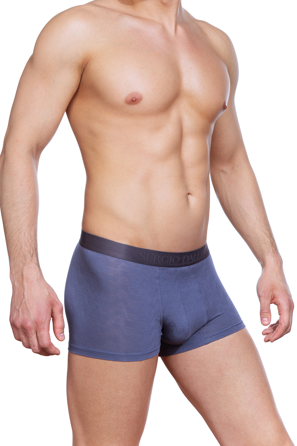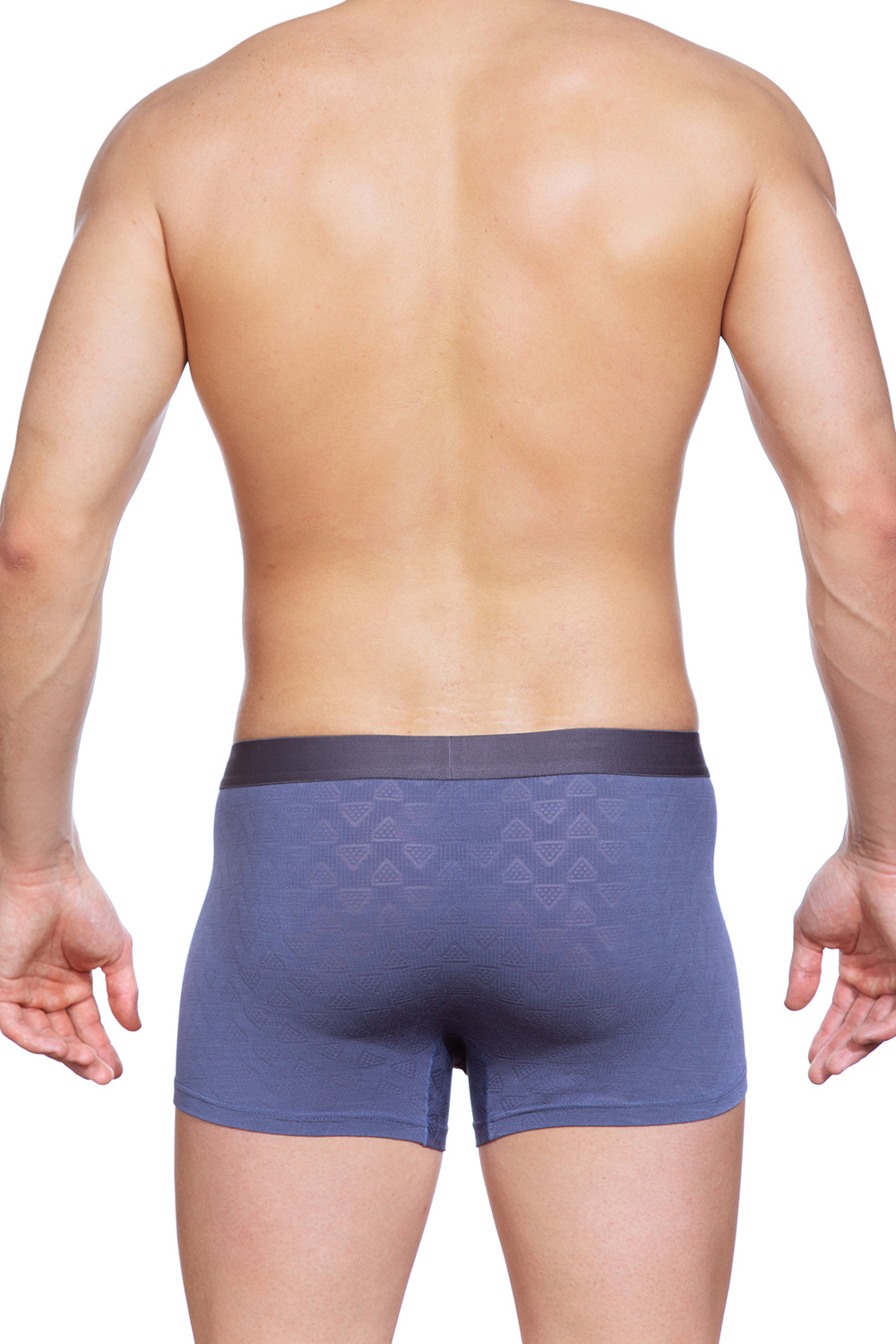 Классические боксеры благородного фиолетового цвета из ультратонкого ажурного рибана с перфорированны эффектом "треугольник". Анатомический крой, двойной контроль качества швов, мягкая эластичная резина с логотипа бренда, дополнительная защита основного шва.
