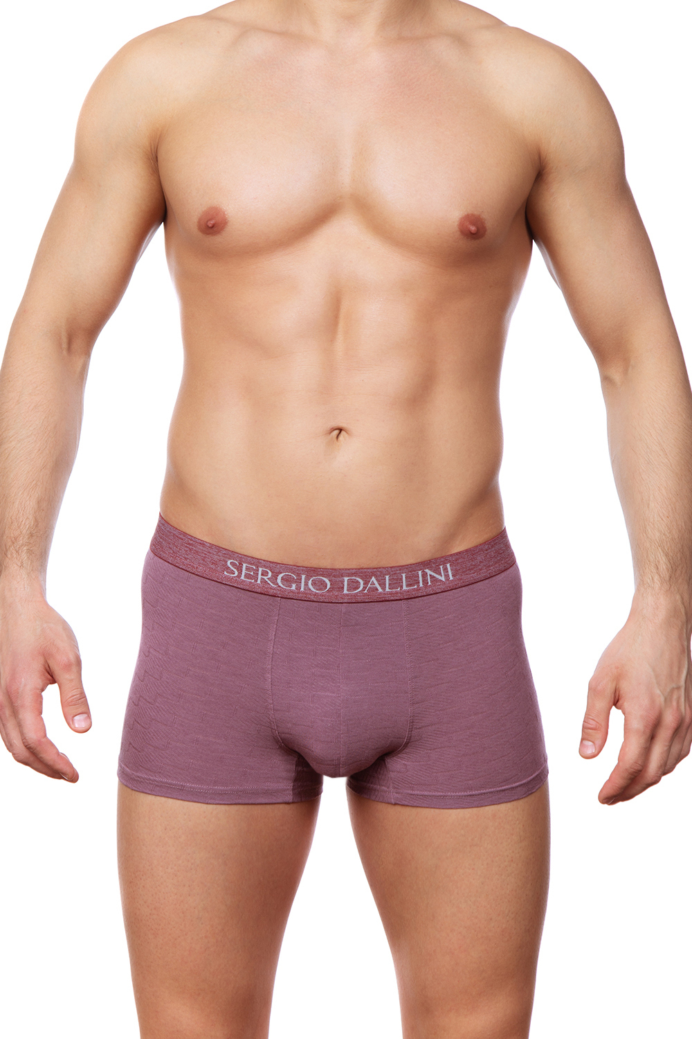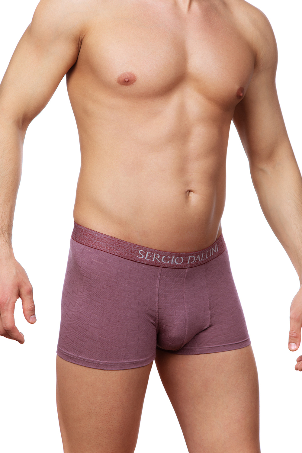 Классические боксеры благородного пурпурного цвета из ультратонкого ажурного рибана с перфорированным эффектом «Кирпичика с насечкой». Анатомический крой, двойной контроль качества швов, мягкая эластичная резина с логотипа бренда, дополнительная защита основного шва.
