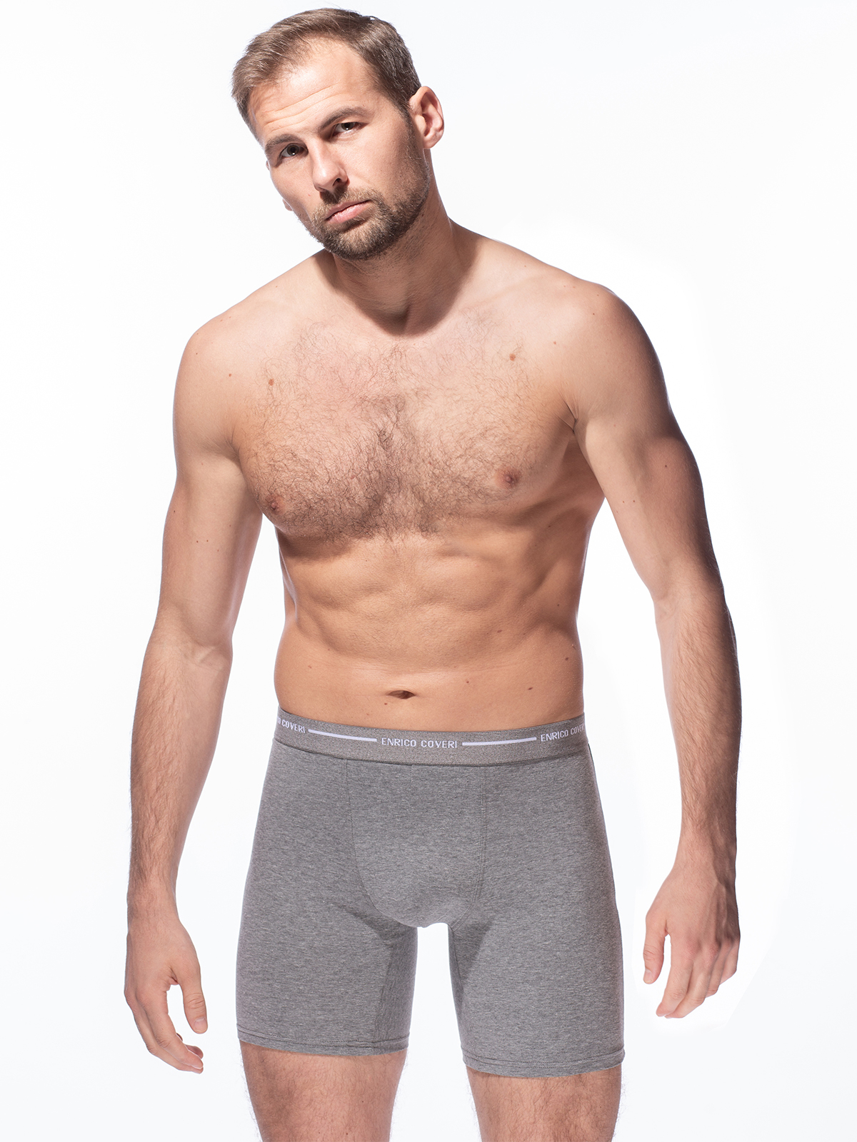 Удлиненные мужские трусы-боксеры из хлопка с эластаном, на поясе широкая резинка с круговой надписью Enrico Coveri.