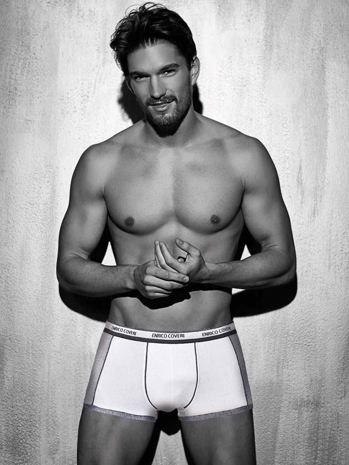 Мужские трусы-боксеры из хлопка с эластаном, на поясе широкая резинка с полосками и круговой надписью Enrico Coveri. По бокам модели размещены контрастные вставки, ширинка и края нижней части отстрочены тесьмой.