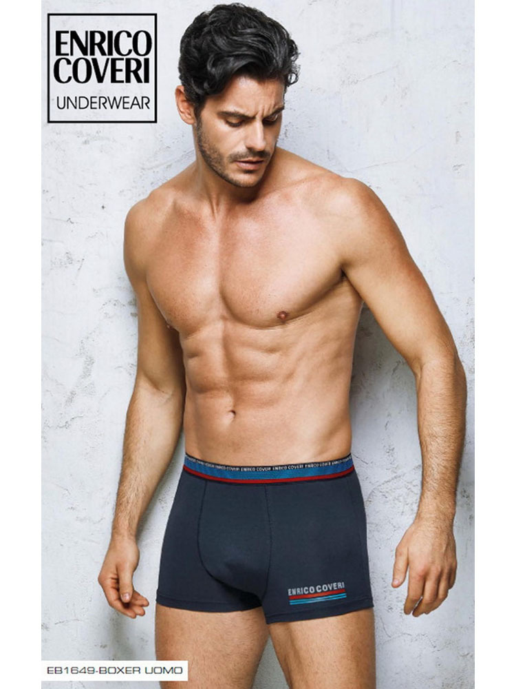 Мужские классические трусы боксеры из хлопка Cotone Bielastico. Контрастные обработанные края. Пришивная мягкая контрастаня пришивная резинка с надписью Enrico Coveri.