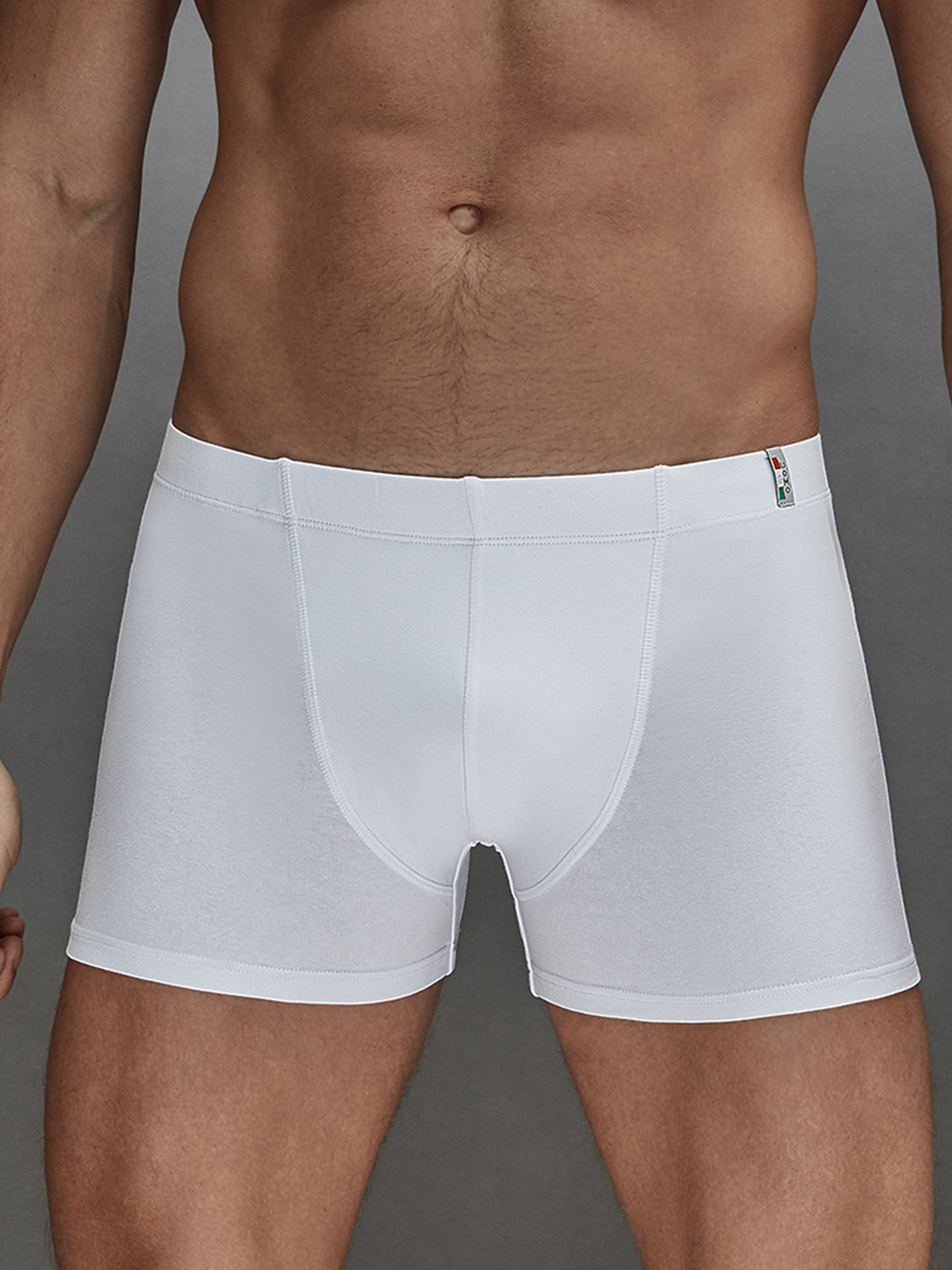 Мужские трусы-боксеры из хлопка с эластаном, на поясе широкая вшивная резинка.