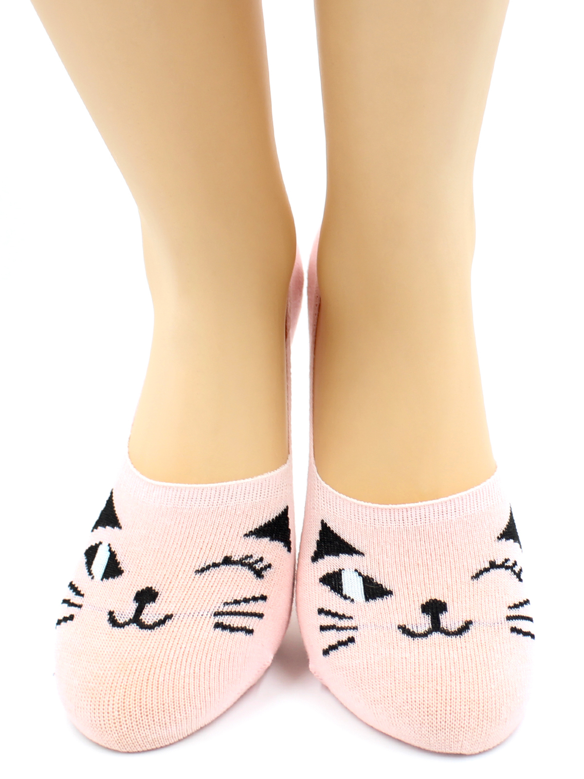 Хлопковые женские подследники с комфортной узкой резинкой. На фронтальной части модели размещен контрастный рисунок "мордочка кошки". Цвета в ассортименте.