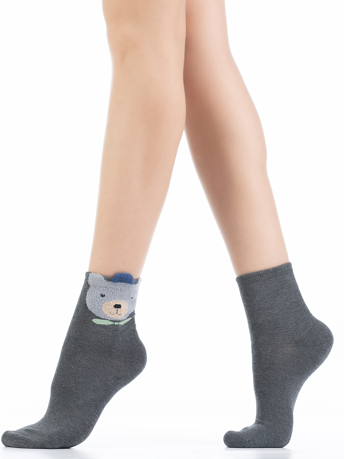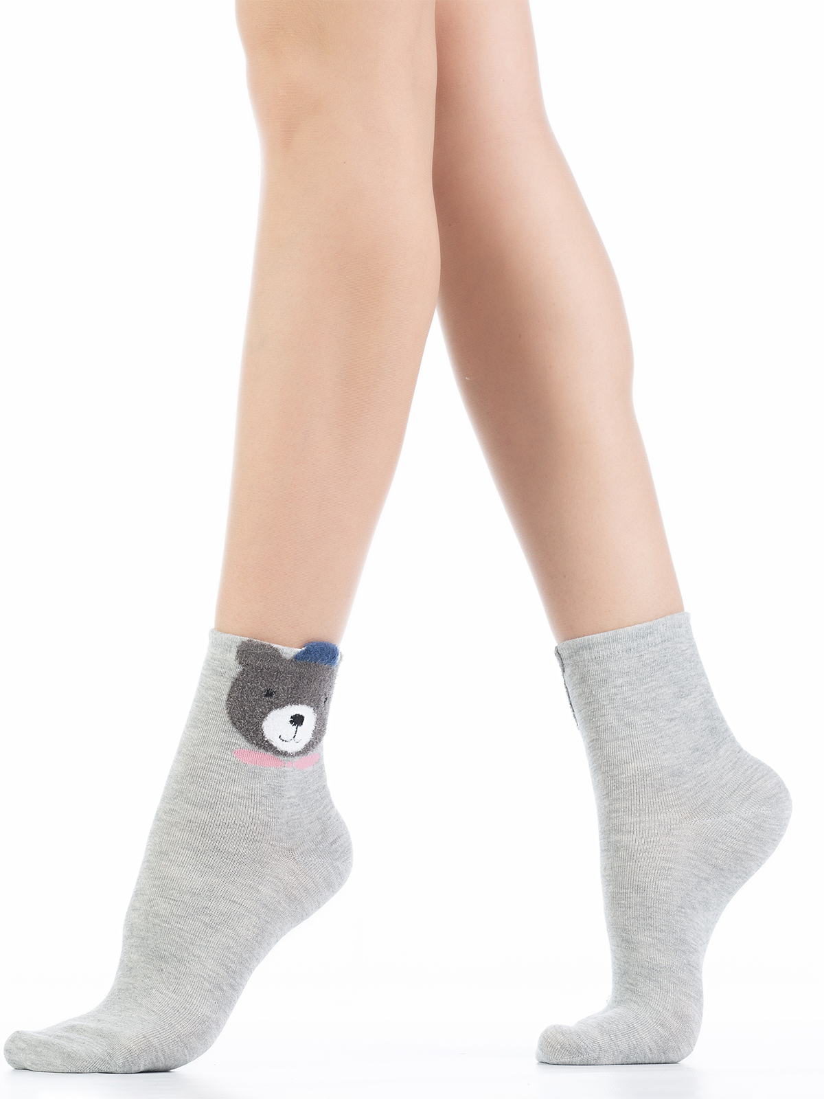 Хлопковые женские носки с комфортной резинкой. На боковой части модели размещен цветной 3D рисунок "пушистый мишка".