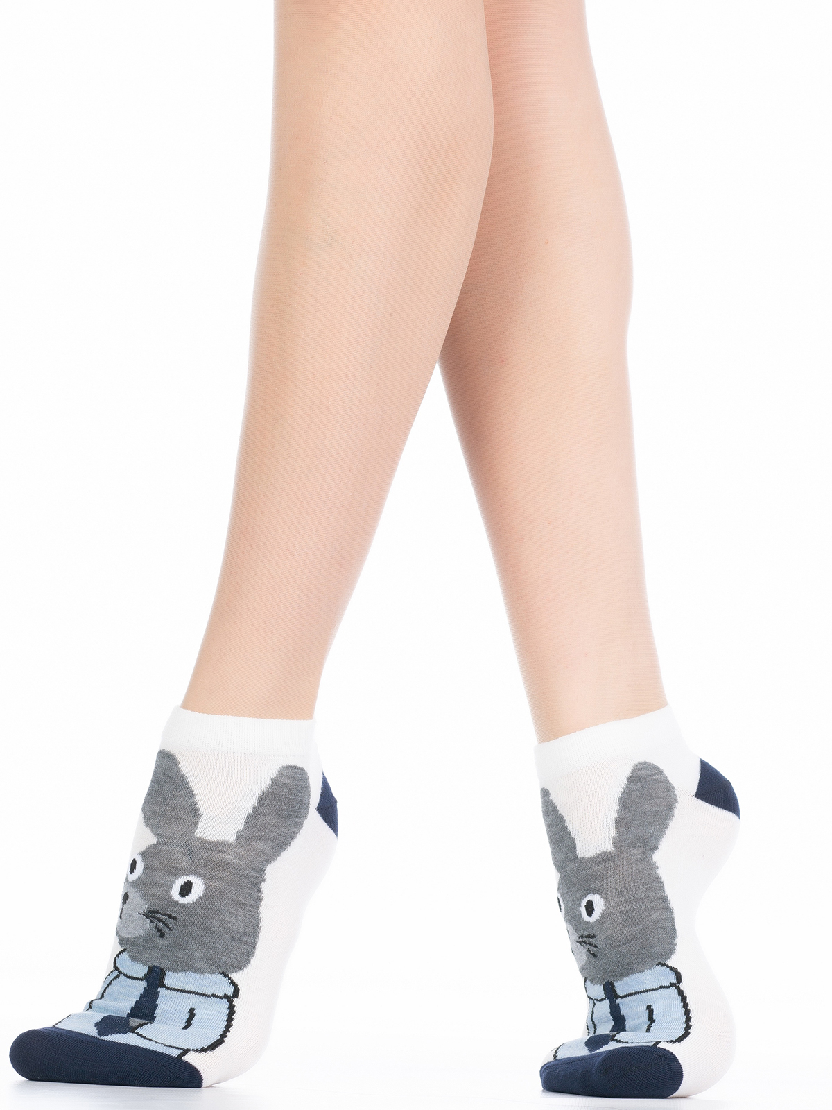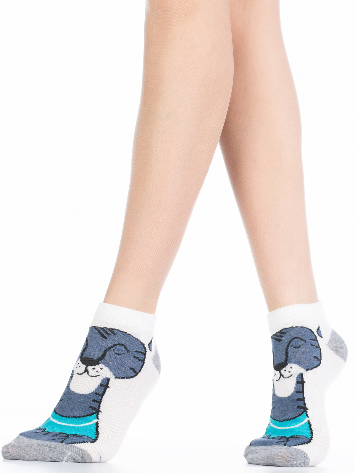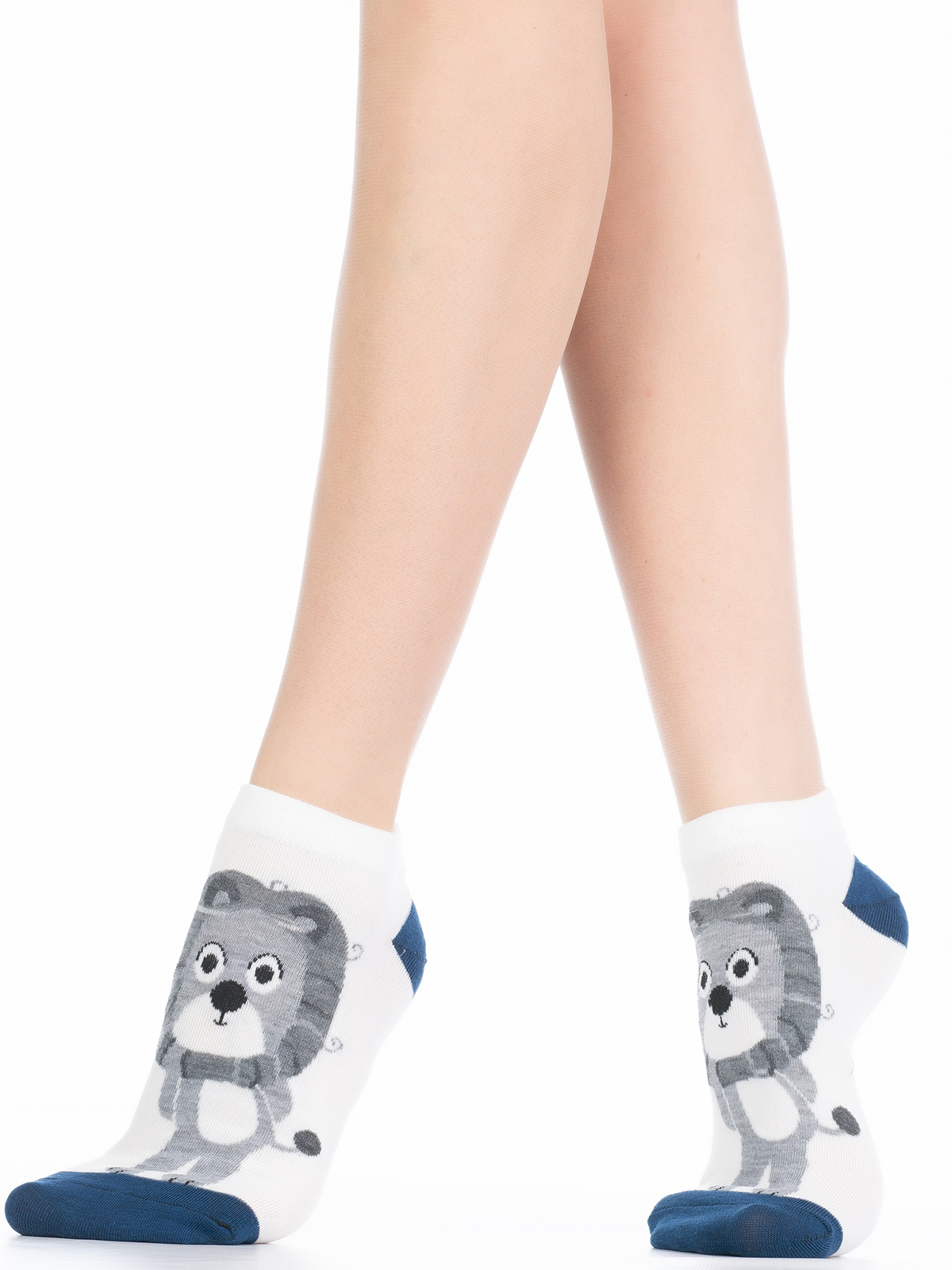 Укороченные женские носки из хлопка с эластаном, с комфортной резинкой. Фронтальная часть модели украшена разноцветным рисунком "животные".