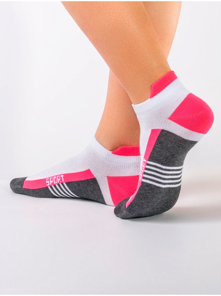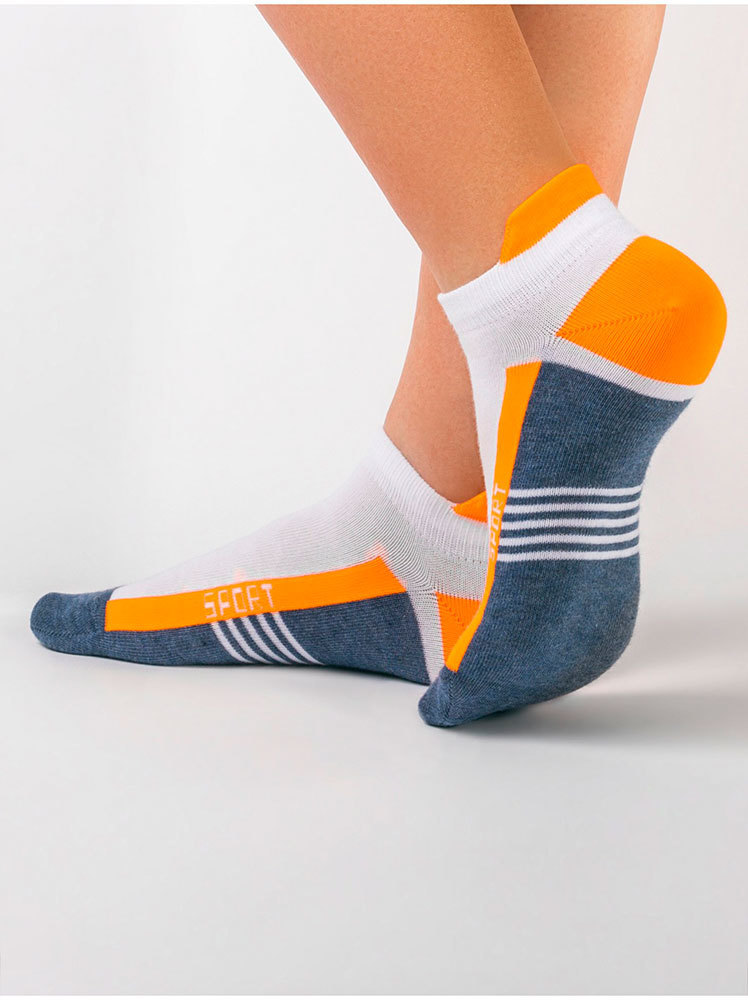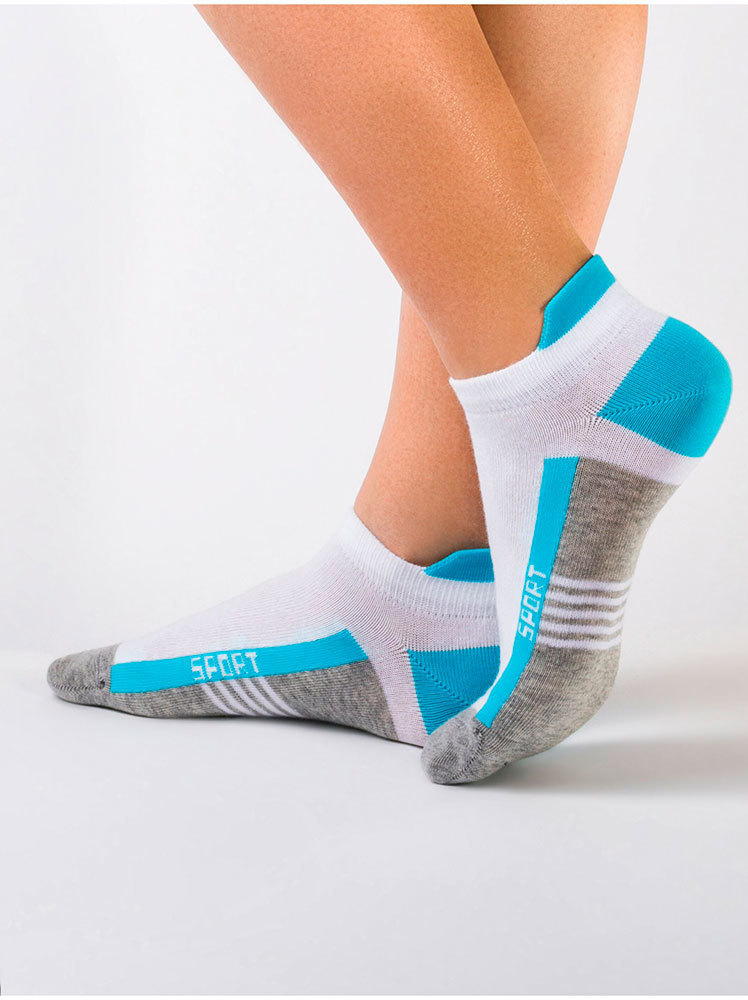 Ультракороткие спортивные женские хлопковые носки с яркими геометрическими рисунками.