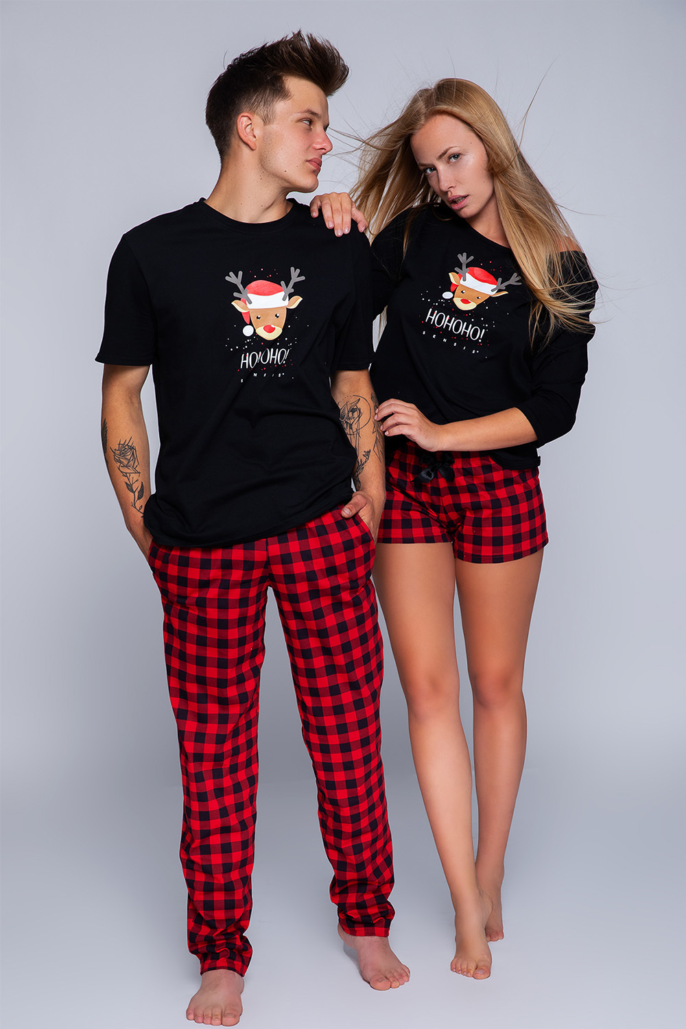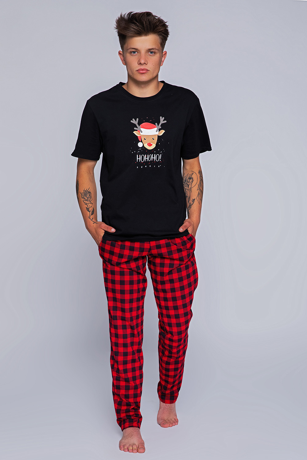 Молодежная пижама HoHoHo - это футболка свободного кроя и клетчатые брюки. Футболка чёрного цвета с круглым вырезом, на груди забавный принт.
