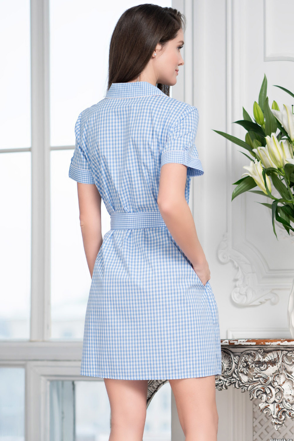 Рубашка Mia-Amore с коротким рукавом, выполнена из сочетания 2-х видов клетки с отделкой в виде белого канта. По бокам расположены карманы. Линию талии можно подчеркнуть за счет пояса.