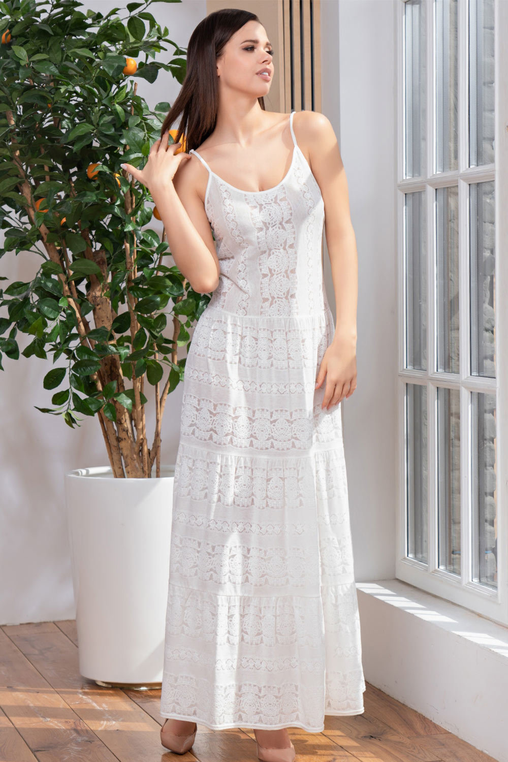 Длинный сарафан Mia-Amore на тонких бретелях с многоярусной юбкой, выполнен из трикотажного полотна с травленным рисунком.