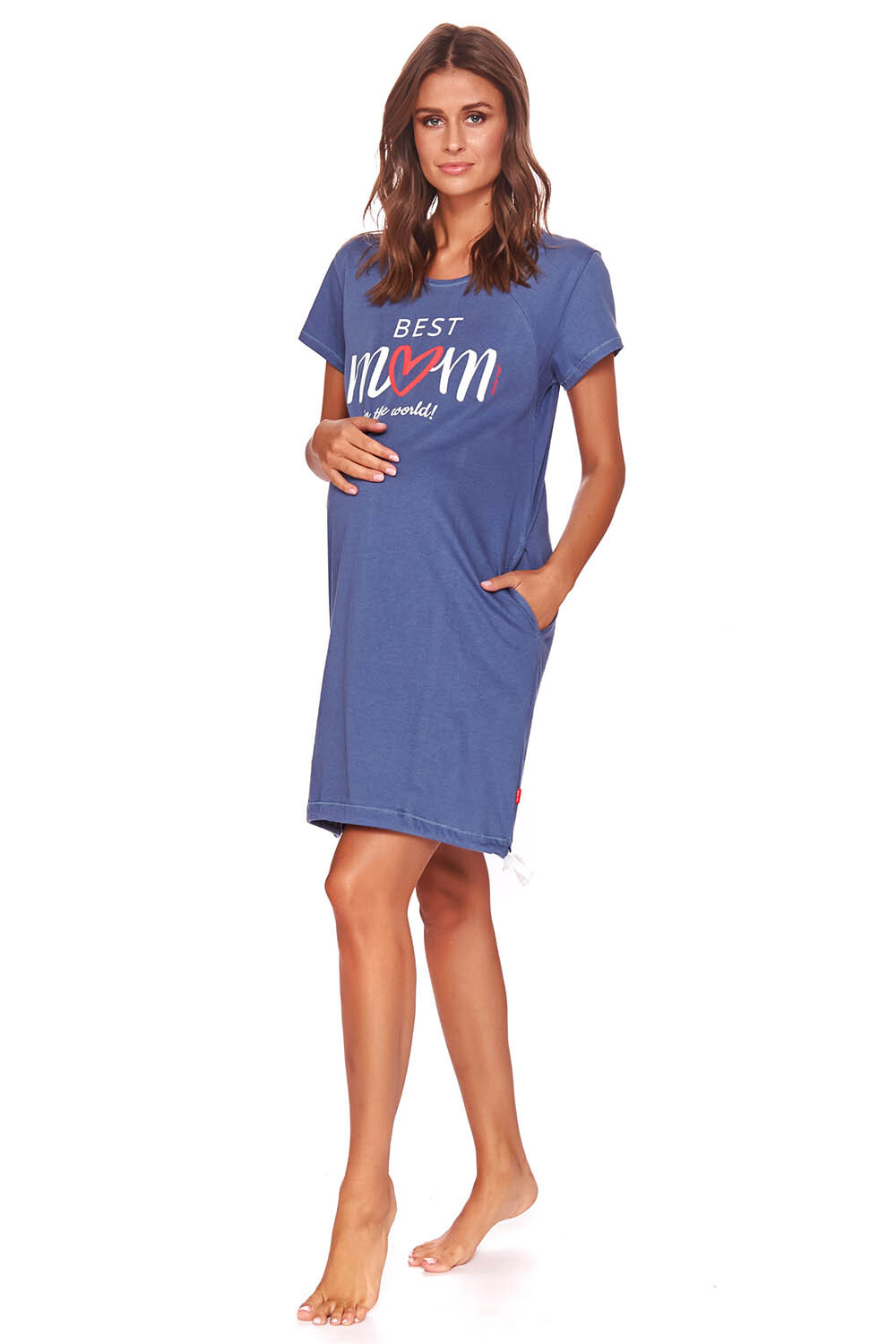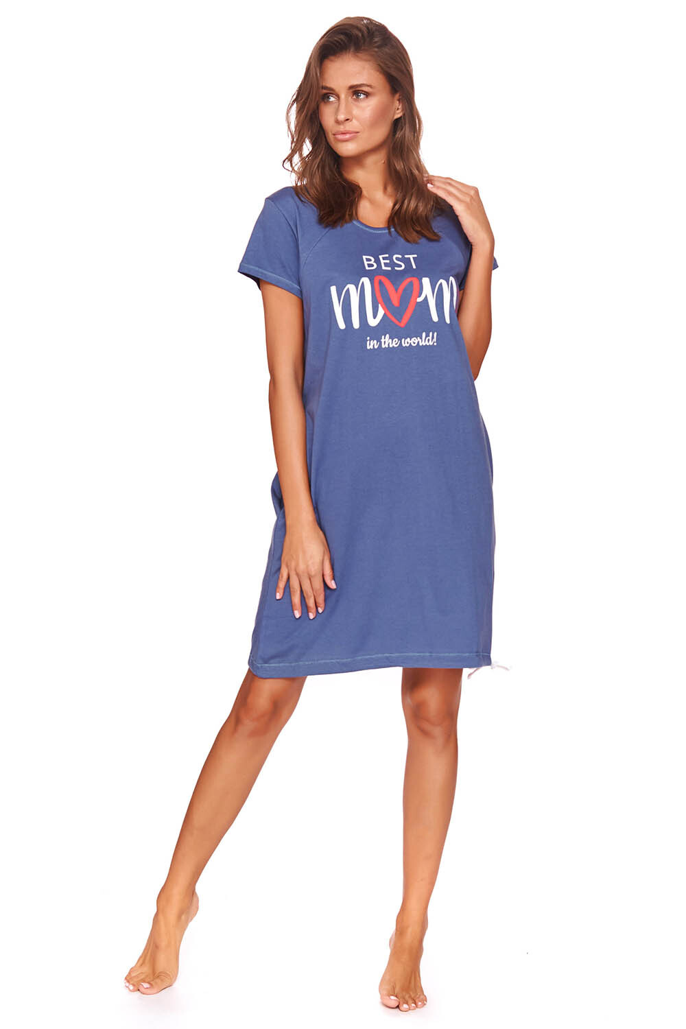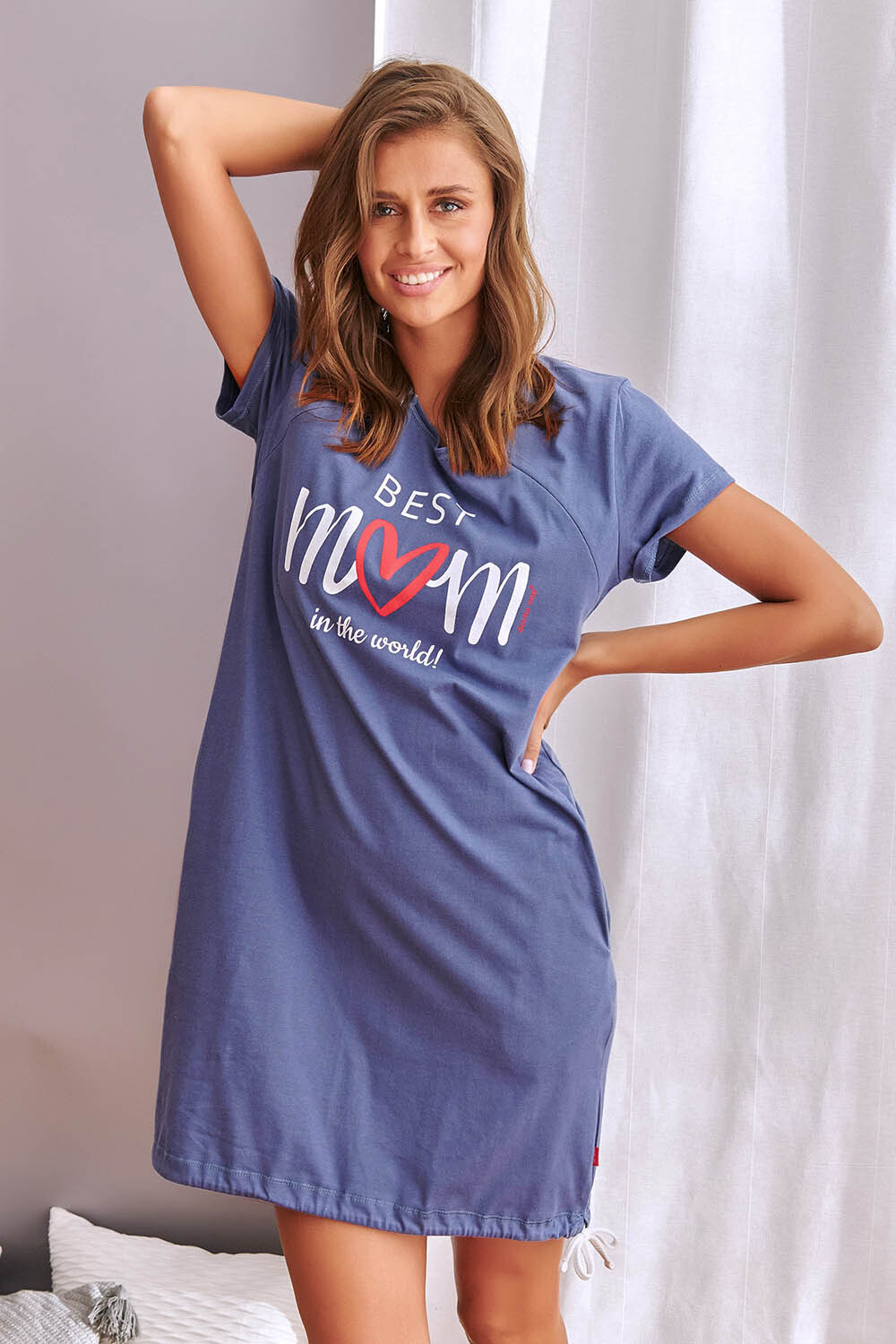 Хлопковая сорочка с надписью "Best Mom" на груди. Сорочка с двумя разрезами на замочках в области горловины, по подолу проходит стягивающая резиночка со шнурочком. Идеальный вариант не только для сна, но и для домашнего отдыха.